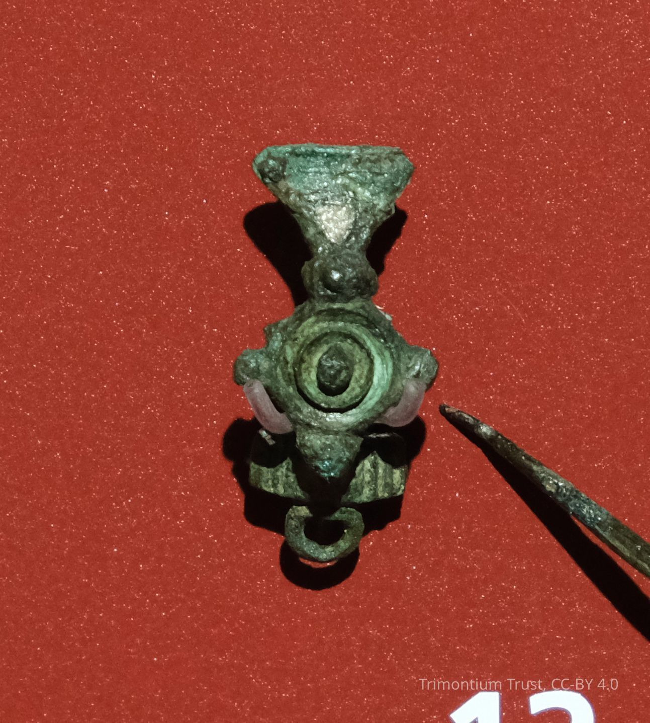 Trumpet-head brooch, with disc on the bow and an enamelled triangular foot, from the Roman site at Newstead