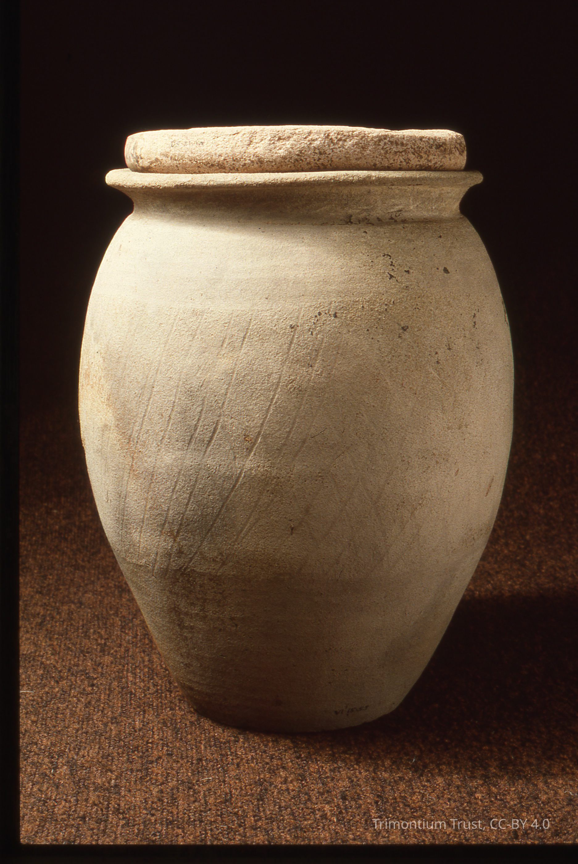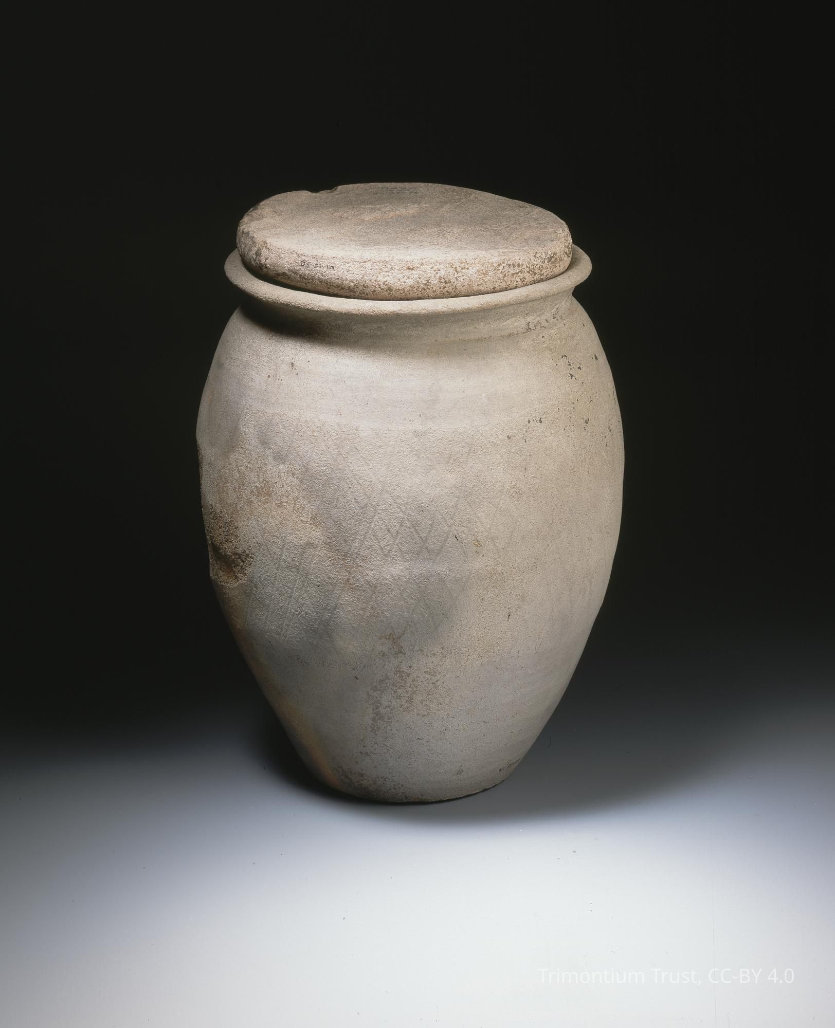 This style of funerary urn was a common style at the time for Roman burials in Britain.