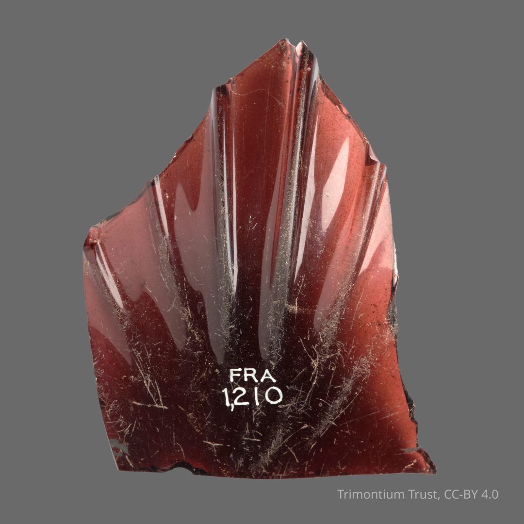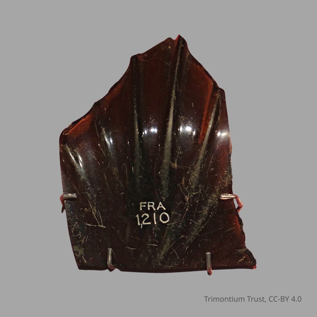 Portion of vessel of reddish brown wine-coloured glass with pillar moulding, from the Roman site at NewsteadUse