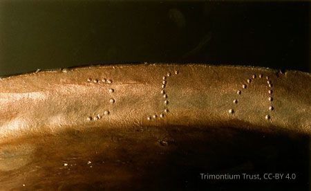 Bronze camp kettle bearing punctured inscription with the centurial mark, from the Roman site at Newstead (Trimontium), late 1st or 2nd centuryUse