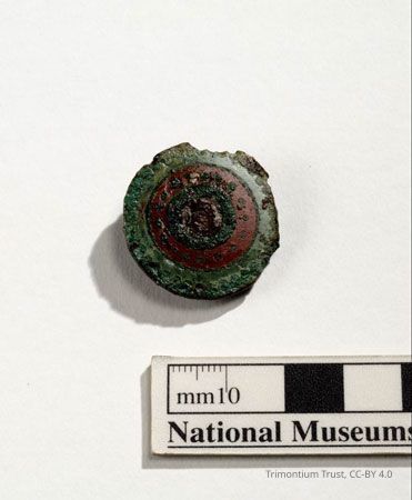 Disc-shaped brooch with enamelling, from the Roman site at Newstead (Trimontium), Roxburghshire, 80 - 180 AD