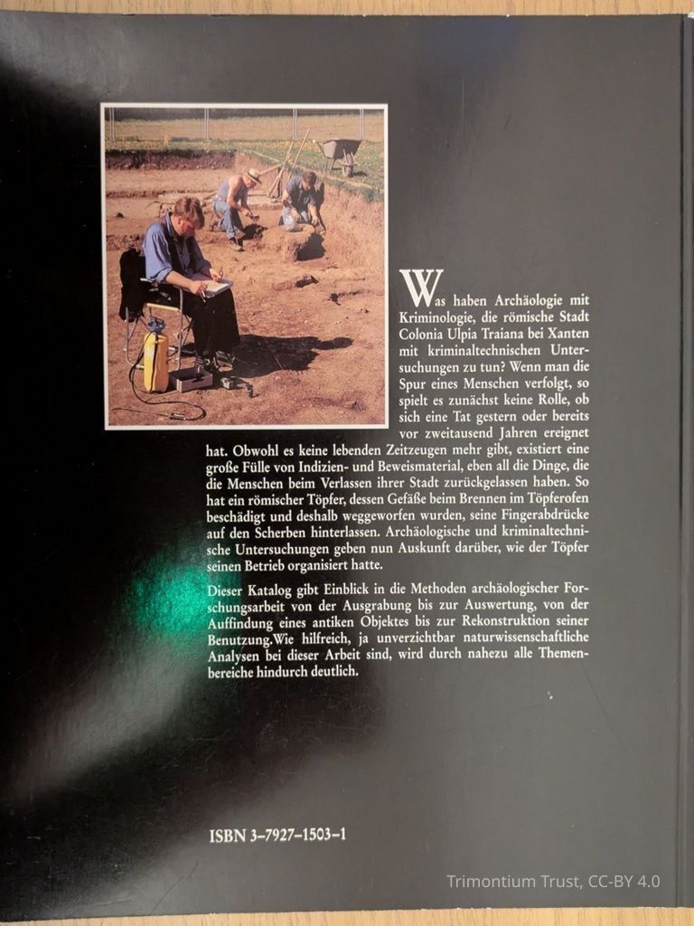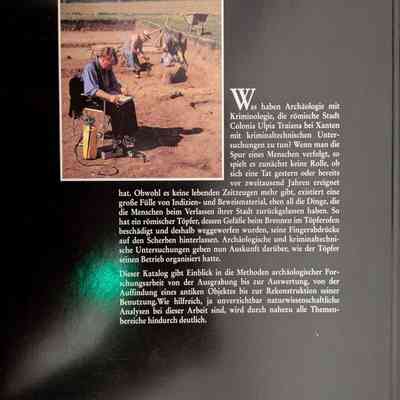 Tatort Cut asks and answers the questions. What does archaeology have to do with criminology? What does the Roman city of Colonia Ulpia Traiana near Xanten have to do with forensic investigations? When following a person's trail, it initially doesn't matter whether a crime occurred yesterday or two thousand years ago. Although there are no living witnesses left, a wealth of circumstantial evidence exists—all the things people left behind when they left their city. For example, a Roman potter whose vessels were damaged during firing in the kiln and therefore discarded left his fingerprints on the shards. Archaeological and forensic investigations now provide information about how the potter organized his business.Lexicon
