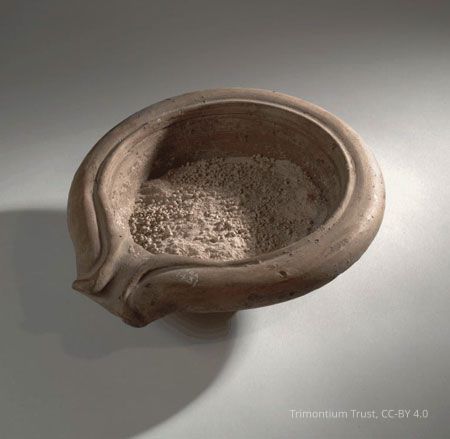 Mortaria are important indicator of the spread of Romanized food preparation methods. Stamps on some early Roman mortaria record the name of the potter, which allows historians to trace their movements over the empire.Collection