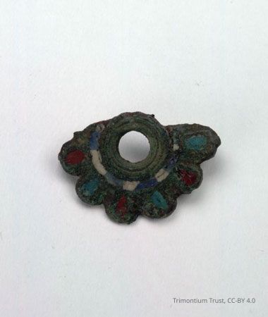Portion of enamelled brooch with vandyked edge, from the Roman site at Newstead (Trimontium)
