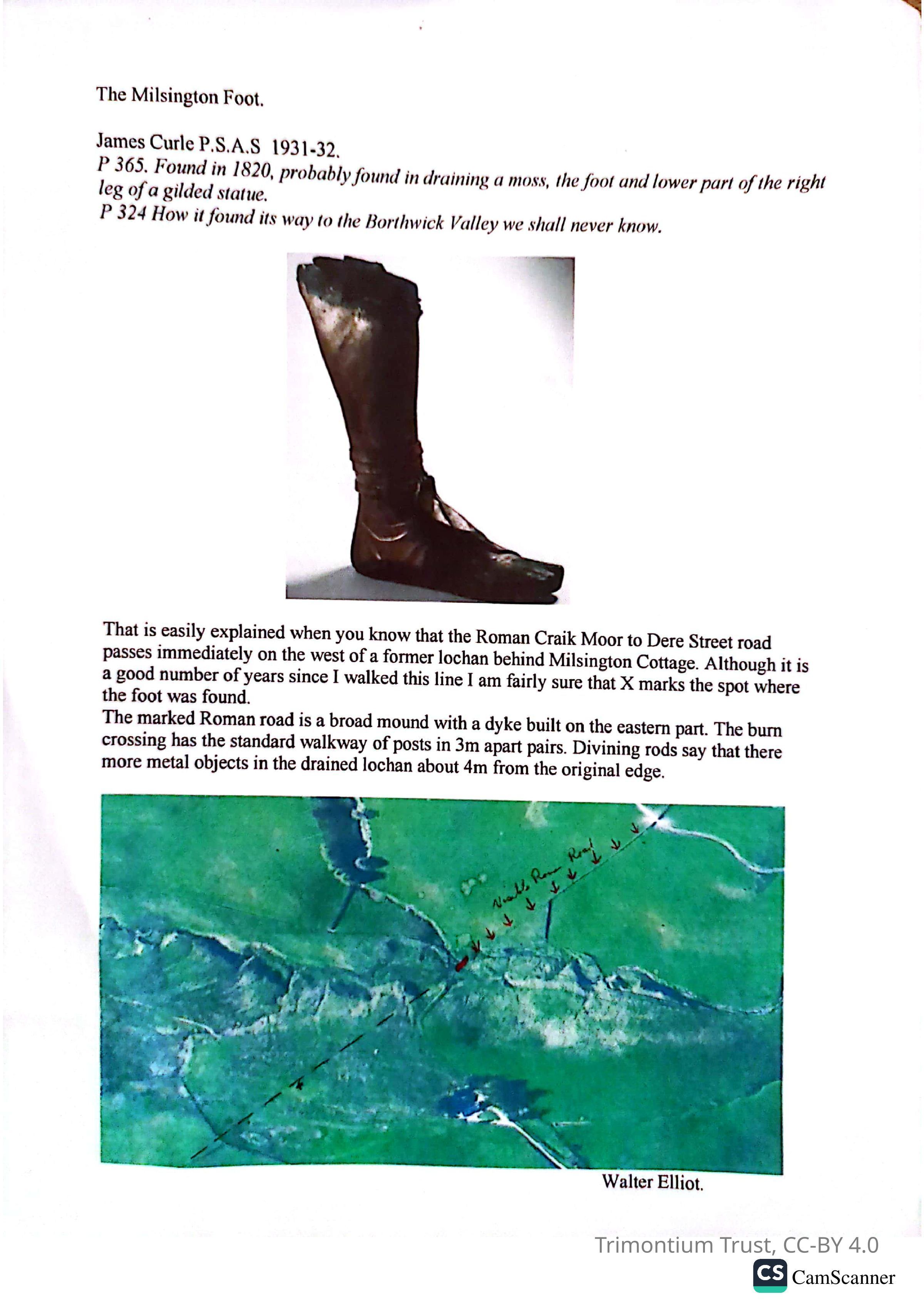 Notes on the MIlsington Foot / Leg. Walter Elliot responds to James Curle's assertion that "we shall never know" how the leg found its way to the Borthwick Valley.