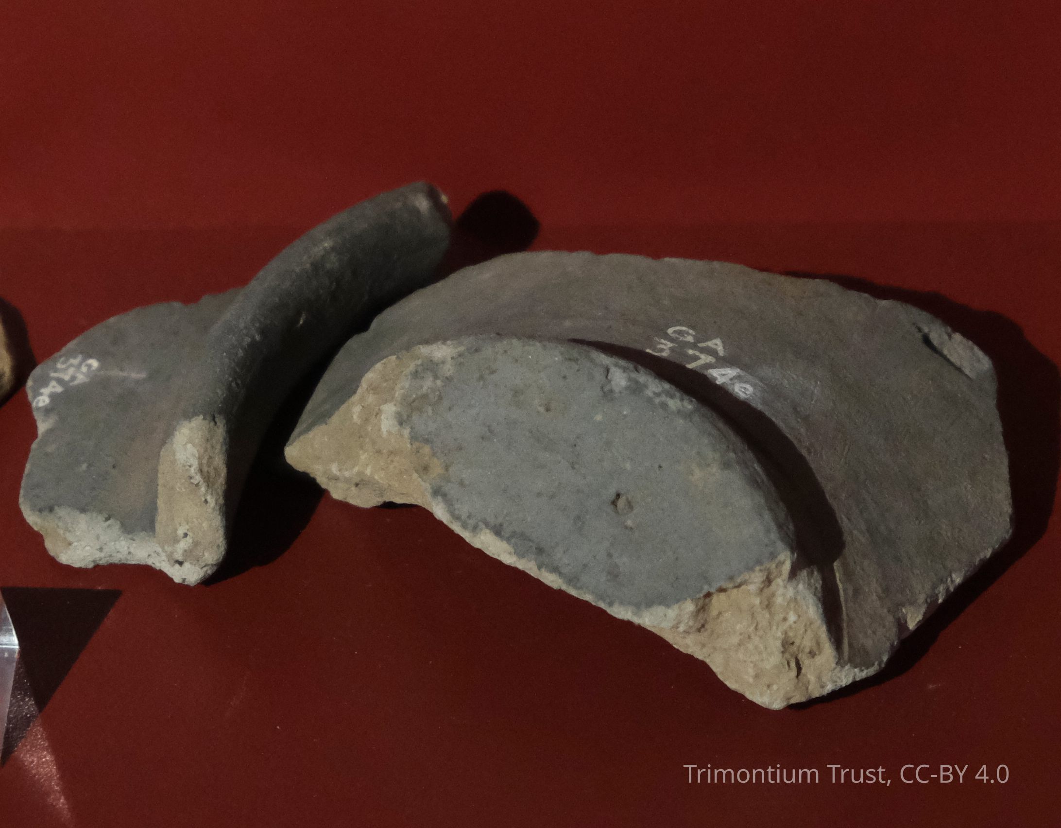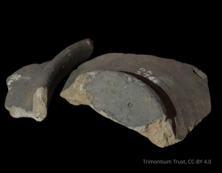 Black coarse ware ceramic fragments, one rim and one base sherd.Use