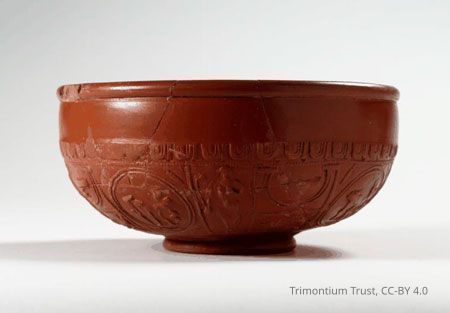 Medium-sized Samian bowl with decorated panels, from the Roman site at Newstead (Trimontium), 140 - 180 ADUse