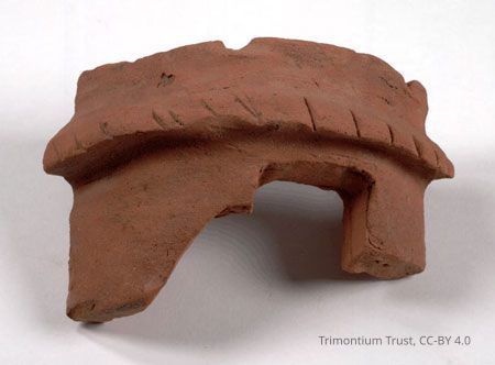 Chimney fragment of red clay, from the Roman site at Newstead (Trimontium), 80 - 180 ADUse