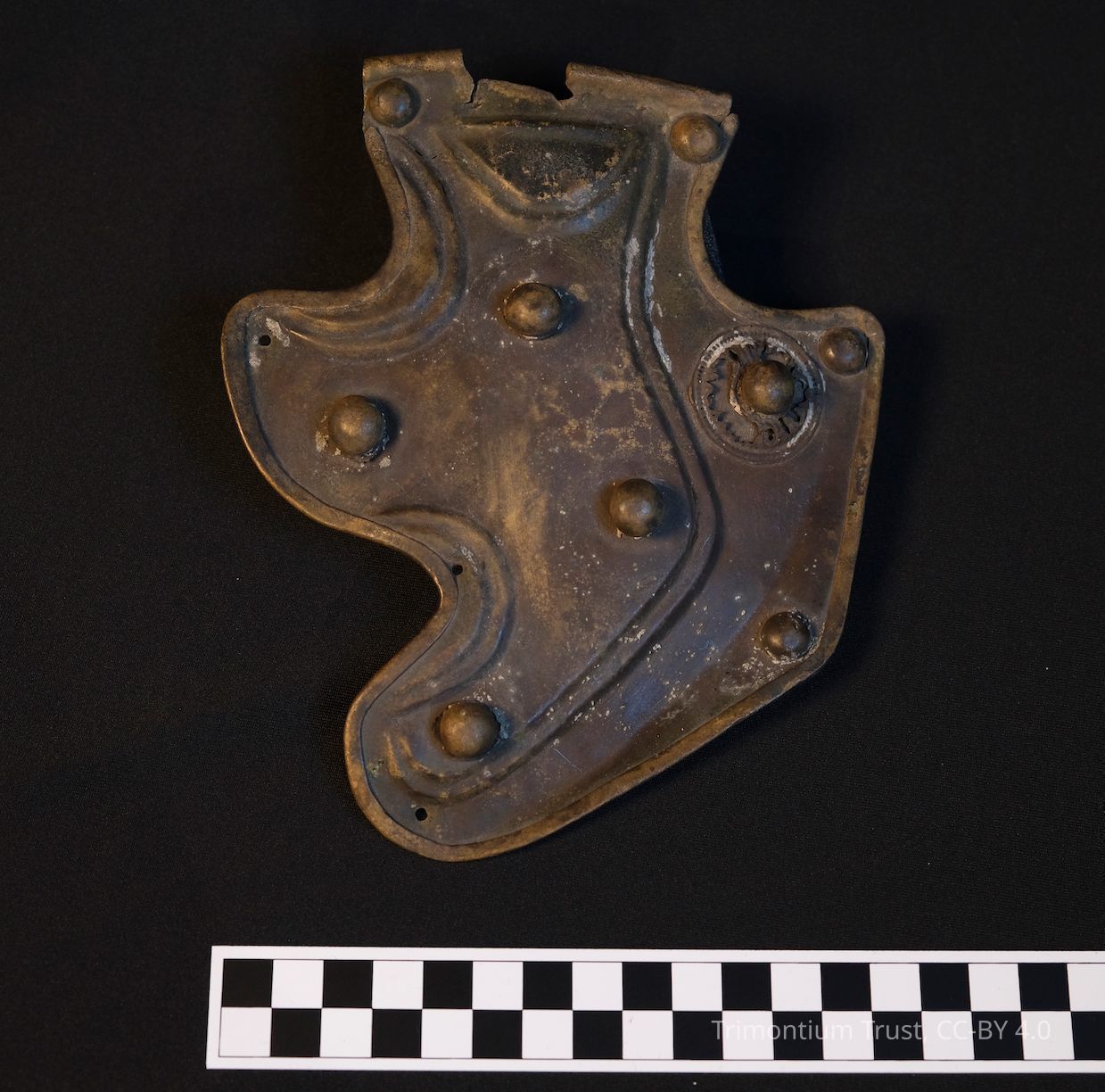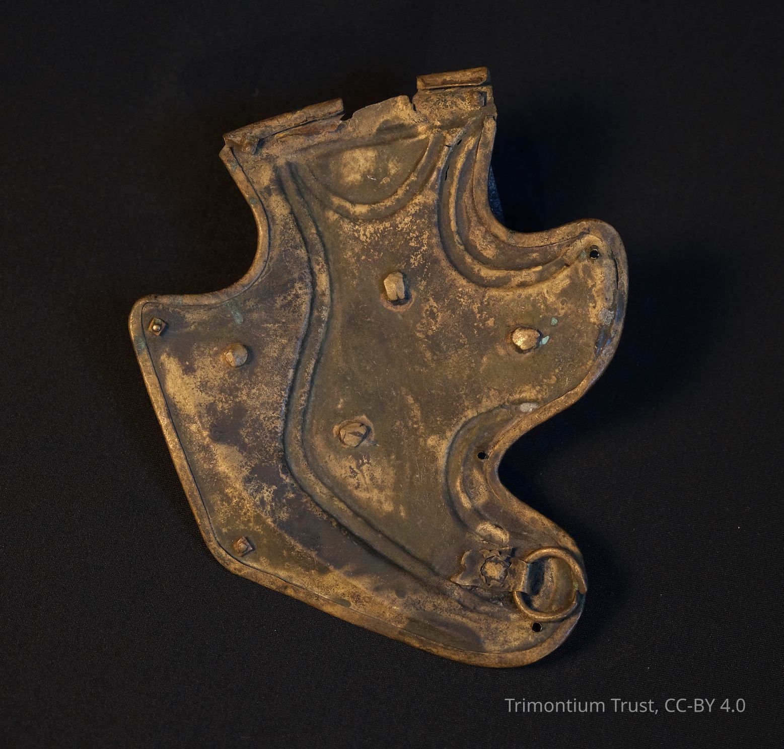 Cheekpiece of a Weisenau type legionary helmet with decorative washers and round rivet-heads.