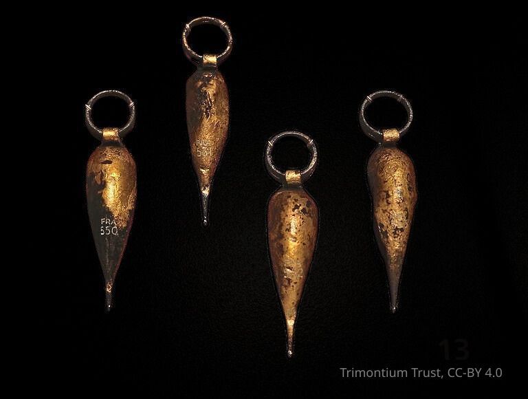 Officers had fine bronze vessels on their dinner table. These bowl fittings once held the handles on the sides of a washbasin, for washing one’s hands at a meal.