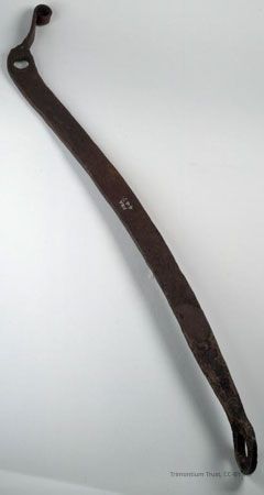 Iron fitting with a short projecting arm ending in a loop, from the Roman site at Newstead (Trimontium)Use