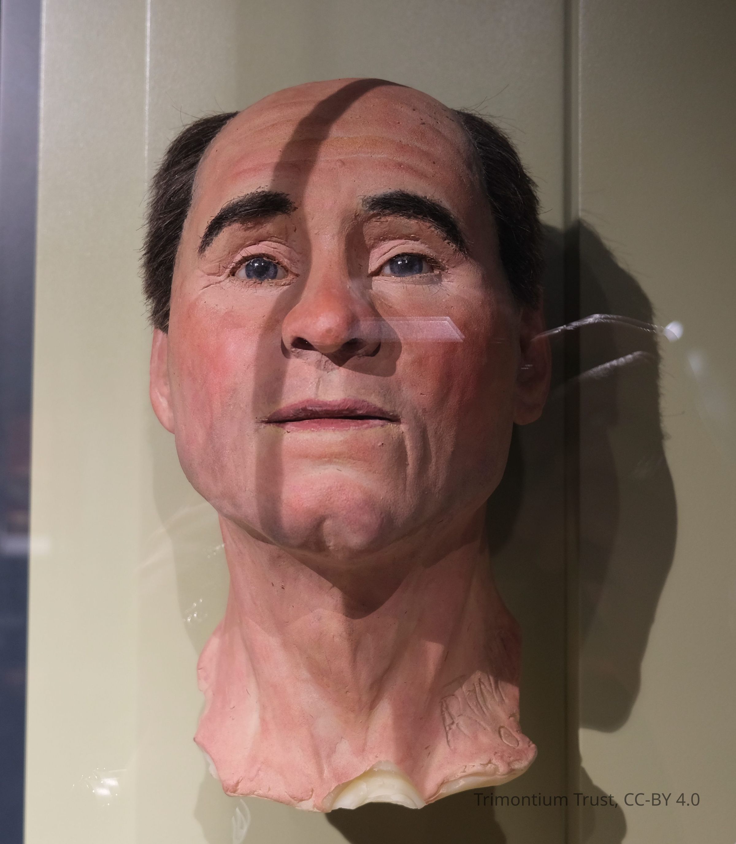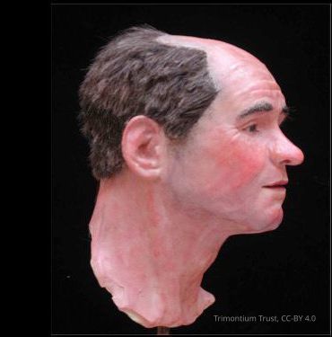 The purpose of this reconstruction was done to give a face and partial identity to the individual's skull found during the 1905 - 1910 excavations at Trimontium by James Curle. The reconstruction was carried out by Professor Caroline Wilkinson in 2003. His skeleton was found almost erect with a spearhead by his side. It has been speculated whether he was a Roman soldier or a native, in which case he might have adorned the ramparts as a warning to the enemy, a practice which can be seen in such places as Trajan's column in Rome.