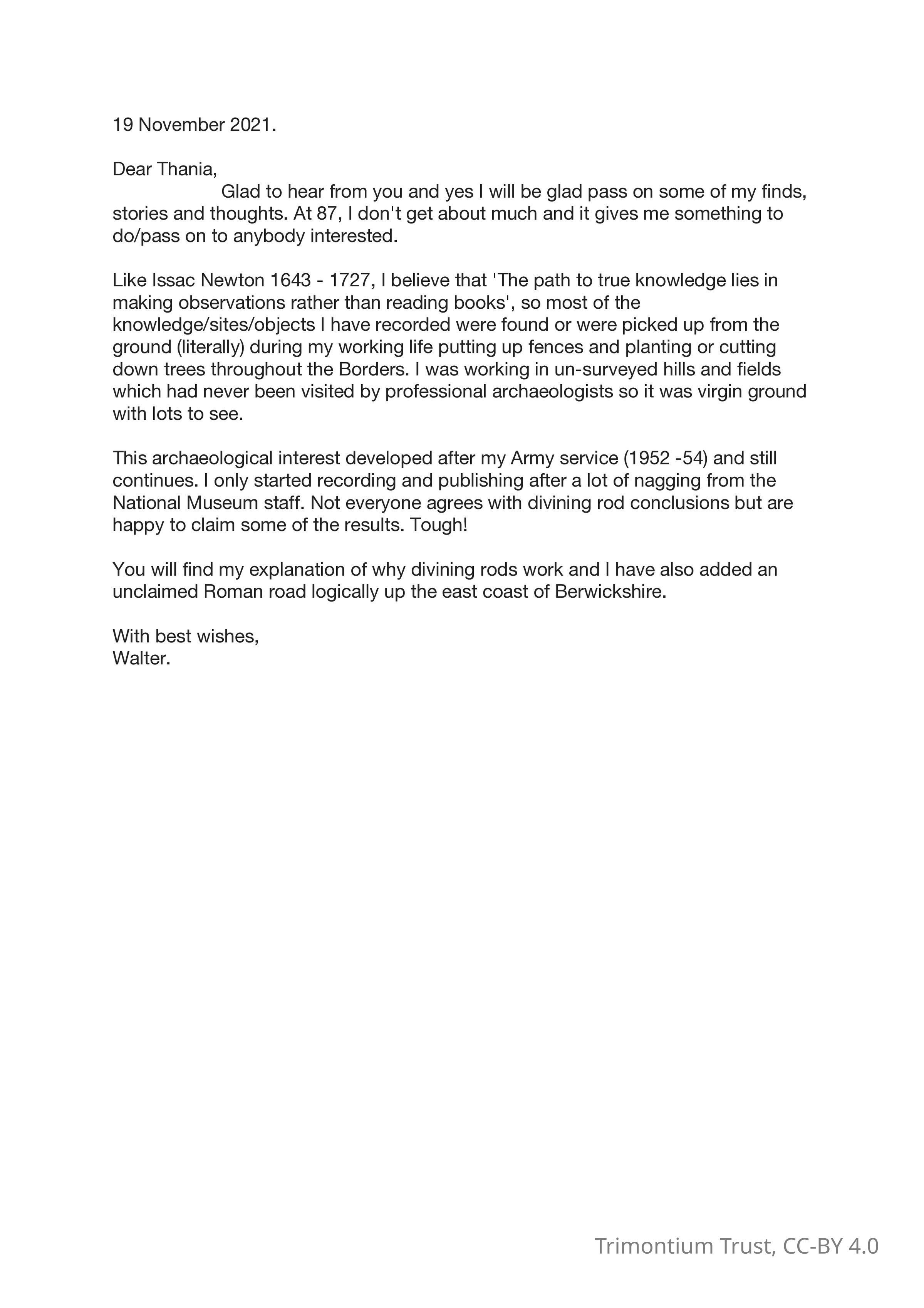 Walter talks about his interest in archaeology, his previous work as a fencer, his finds and relationship with archaeologists and NMS.Context