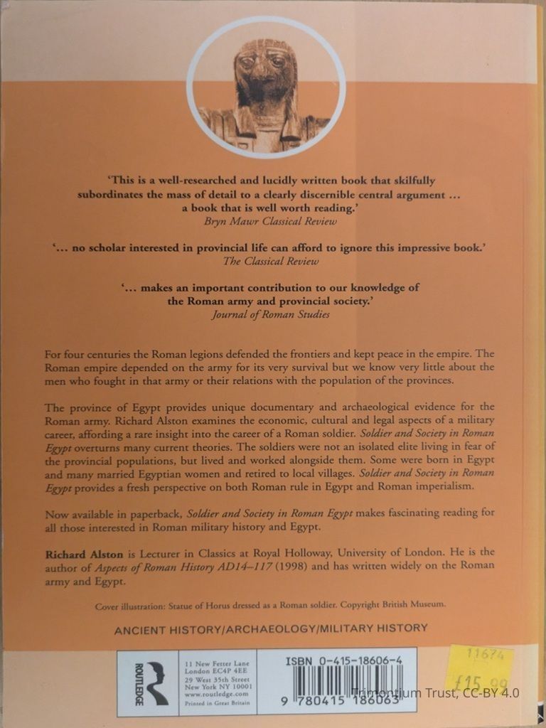 The province of Egypt provides unique archaeological and documentary evidence for the study of the Roman army. In this fascinating social history the author examines the economic, cultural, social and legal aspects of a military career, illuminating the life and role of the individual soldier in the army.