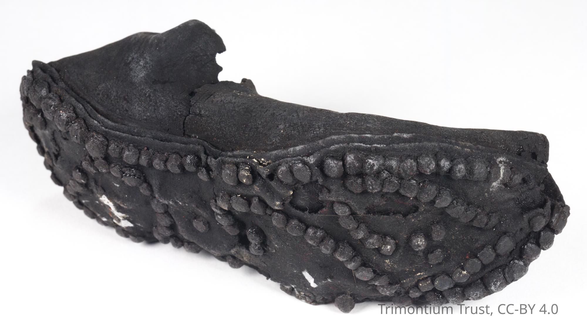 Roman shoe or calceus of leather, with elaborate hobnail pattern, from the Roman site at Newstead (Trimontium), 80-180 ADUse
