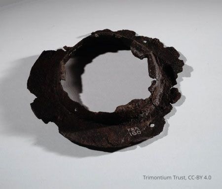 Remains of an iron shield boss, from the Roman site at Newstead (Trimontium), 80 - 180 ADUse