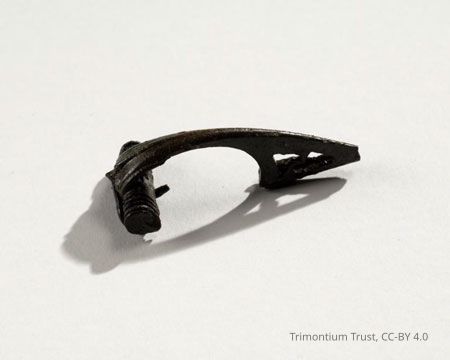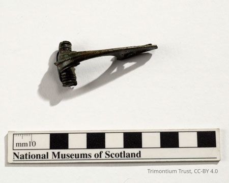 Bow brooch with pierced catch plate, from the Roman site at Newstead (Trimontium), Roxburghshire, 140 - 180 ADUse