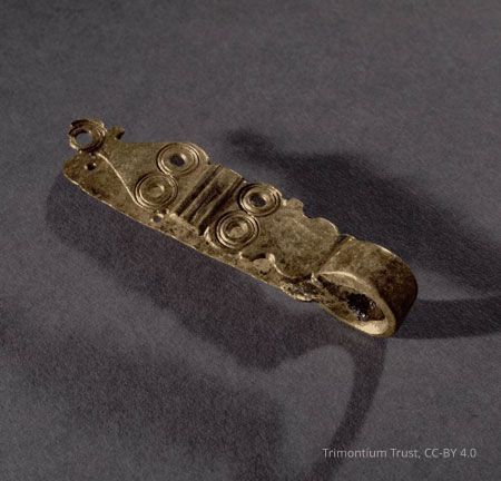 Brass junction loop from the Roman site at Newstead (Trimontium), 80 - 100 AD