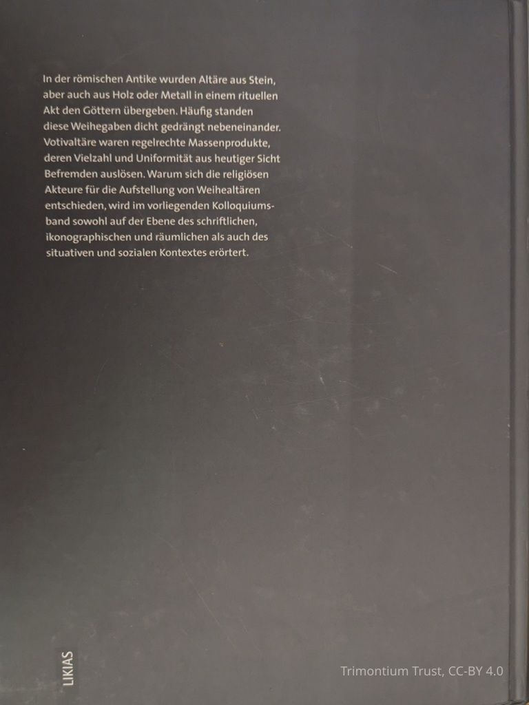 Römische Weihealtäre im Kontext (Roman Altars in Context)Description
