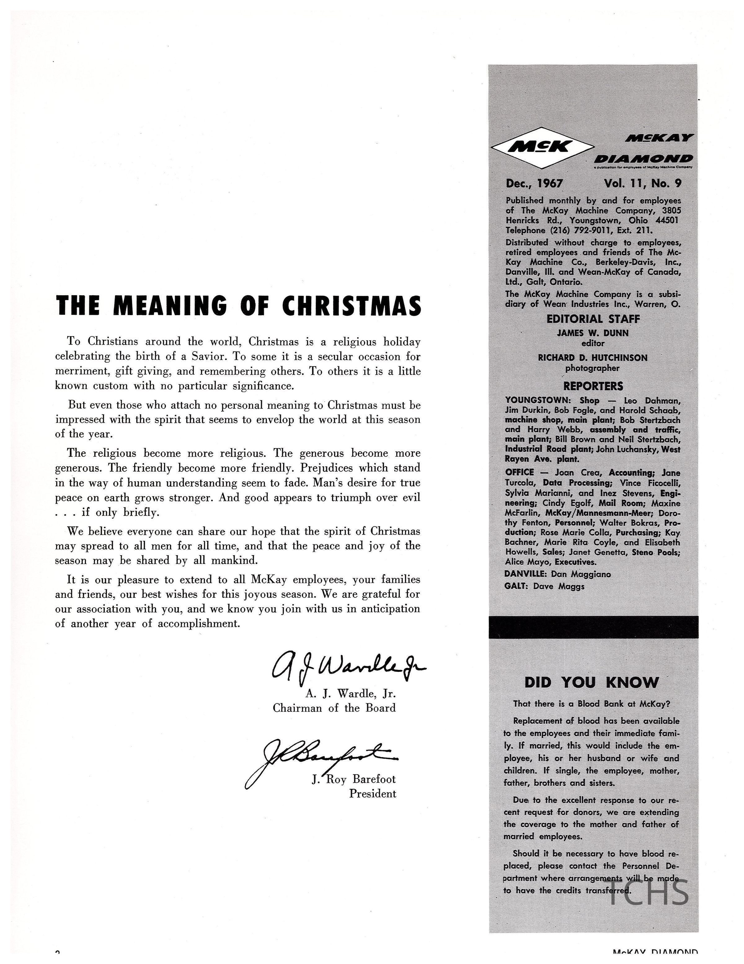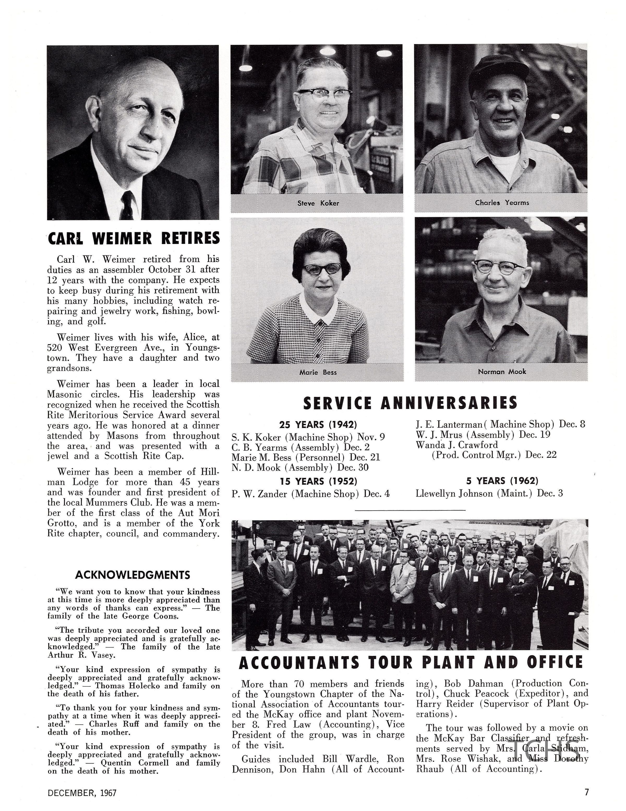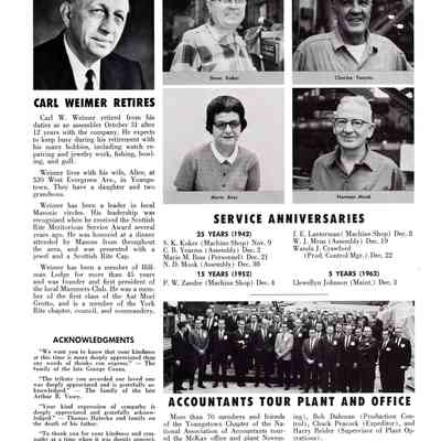 The McKay Machine Company, Dunn, James W, Hutchinson, Richard D, Dahman, Leo, Durkin, Jim, Fogle, Bob, Schaab, Harold, Stertzbach, Bob, Webb, Harry, Brown, Bill, Stertzbach, Neil, Luchansky, John, Crea, Joan, Turcola, Jane, Ficocelli, Vince, Marianni, Sylvia, Stevens, Inez, Egolf, Cindy, McFarlin, Maxine, Fenton, Dorothy H, Bokras, Walter, Colla, Rose Marie, Bachner, Kay, Coyle, Maria Rita, Howells, Elisabeth, Genetta, Janet, Mayo, Alice, Maggiano, Dan, Maggs, Dave, Wardle Jr., A. J., Barefoot, J. Roy