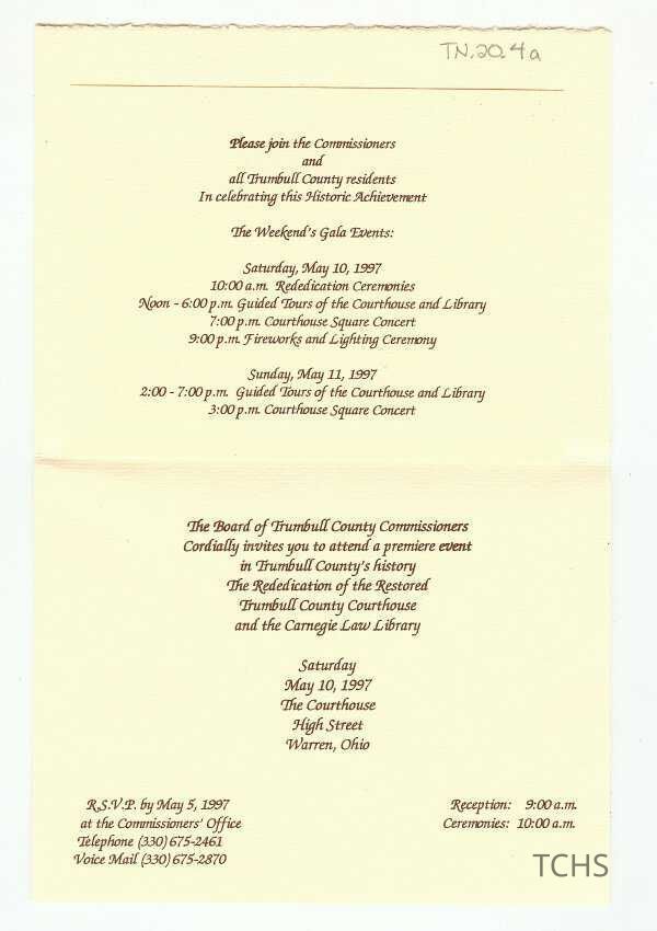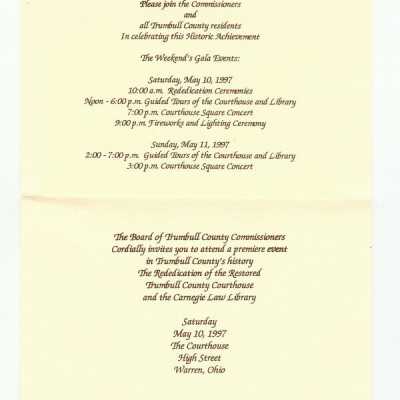 Invitation to the Rededication of the Restored Trumbull Co. Courthouse and Carnegie Law Library