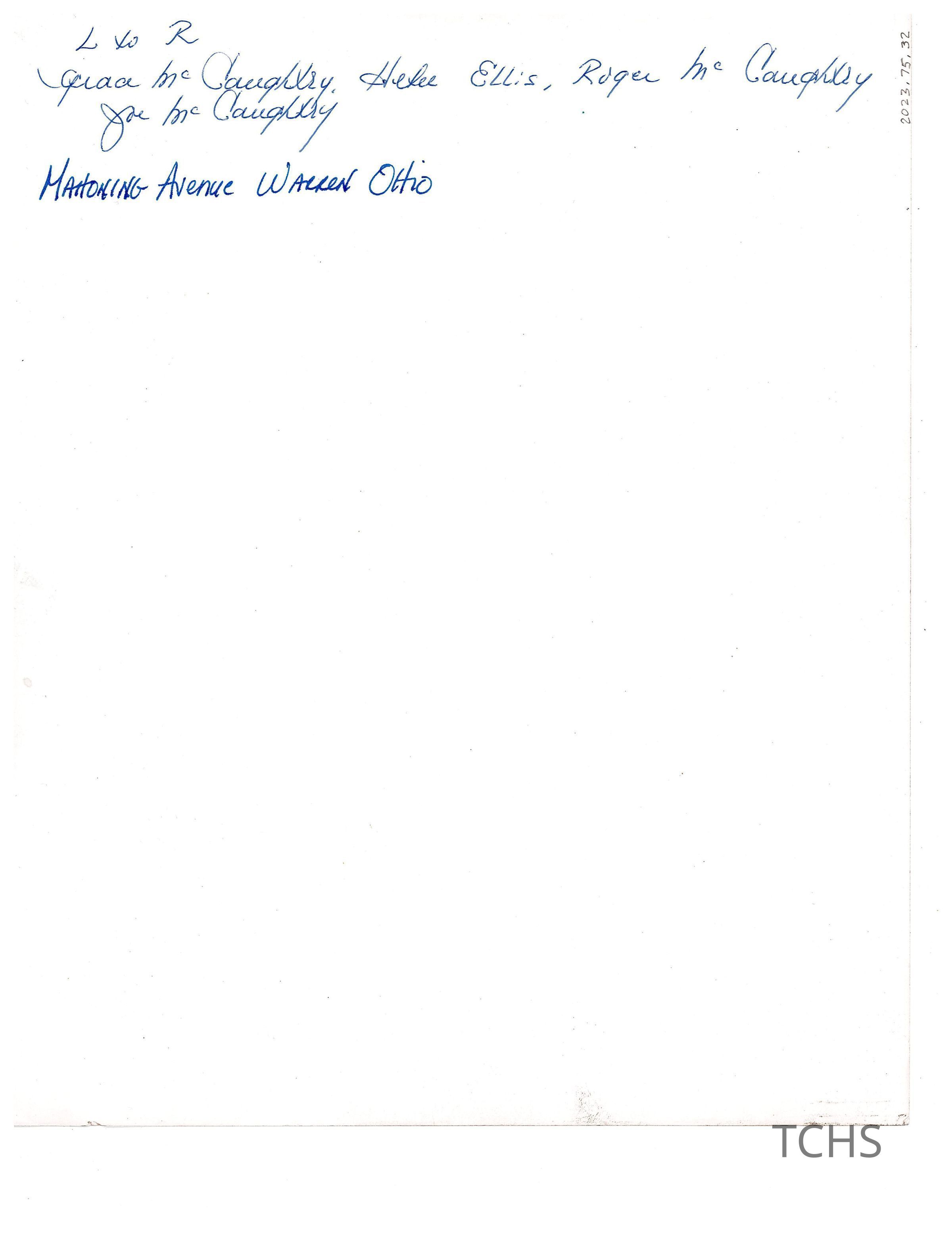 A photograph of Grace, Helen, Roger and Joe McCaughtry at their home 739 Mahoning Ave., no date.Photograph Details