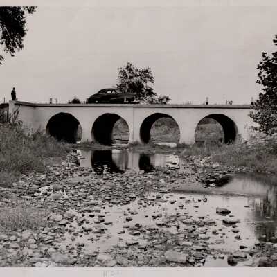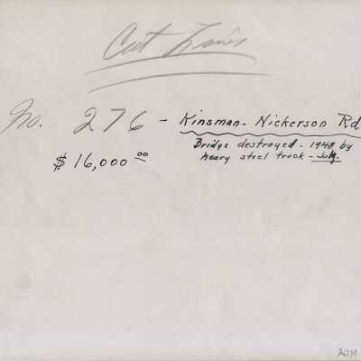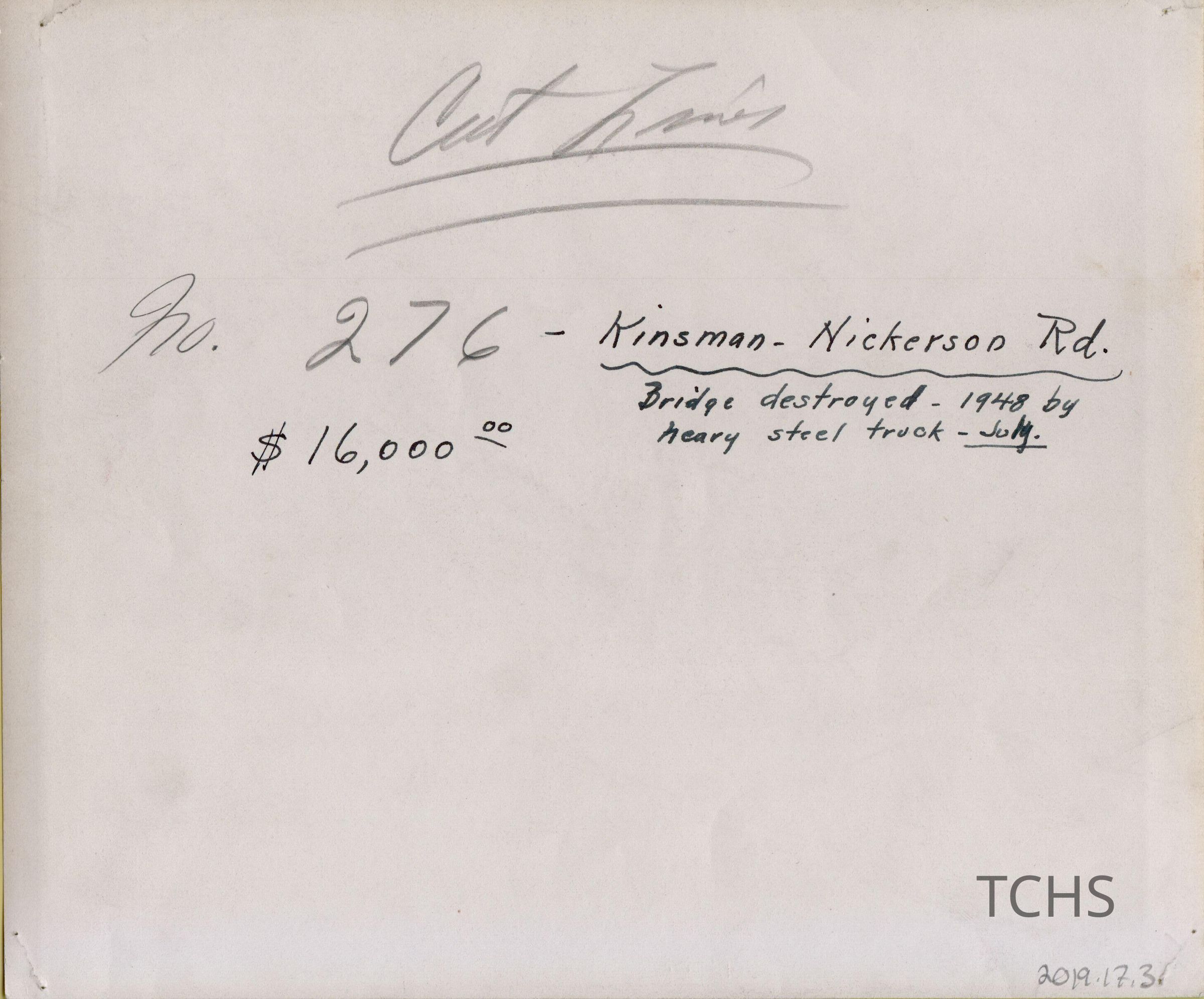 "Kinsman-Nickerson Rd. Bridge destroyed - 1948 by heavy steel truck - July"Location