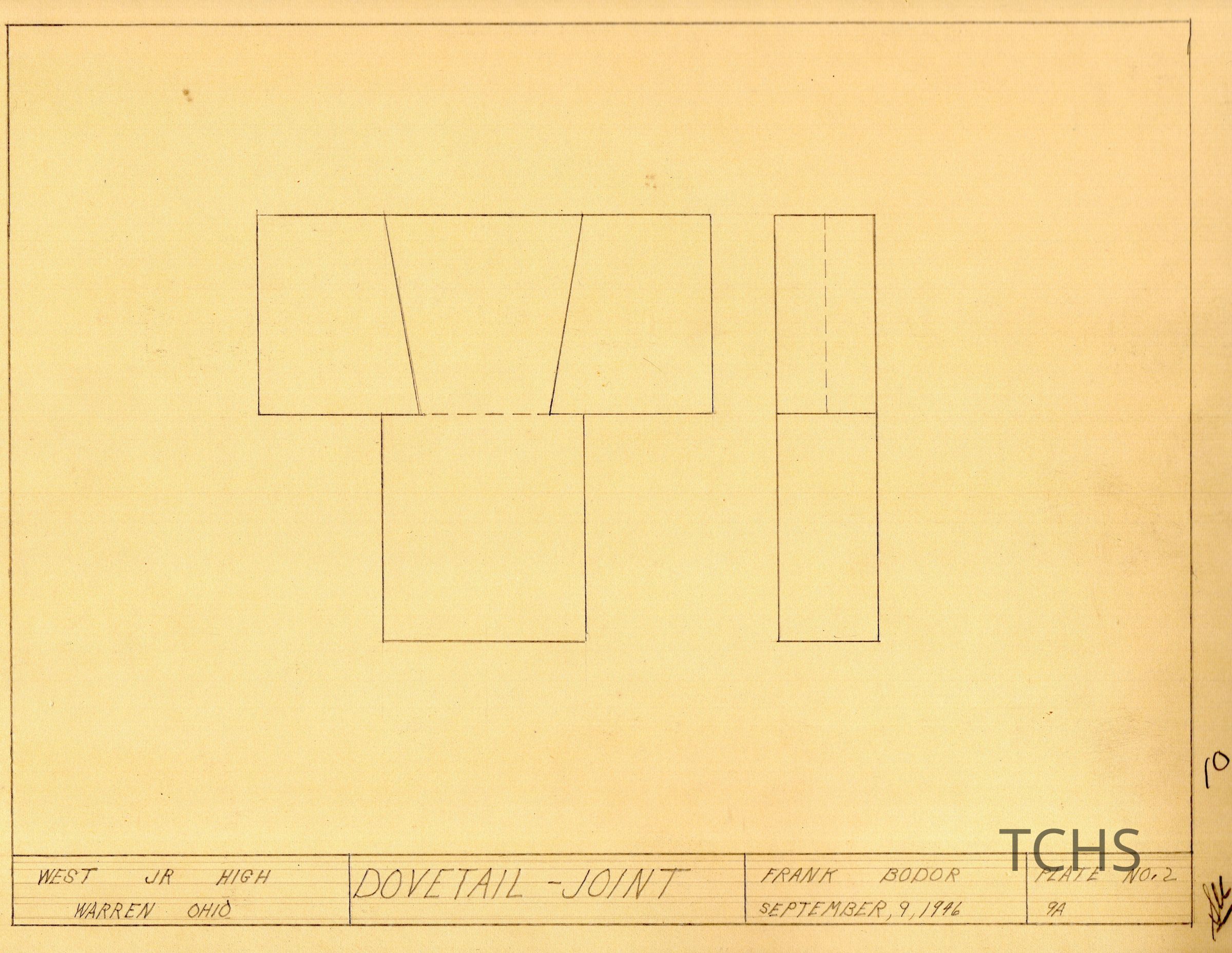Frank Bodor drawing of a Dovetail-Joint, likely for a West Jr. High class, in September 9, 1946.Acquisition
