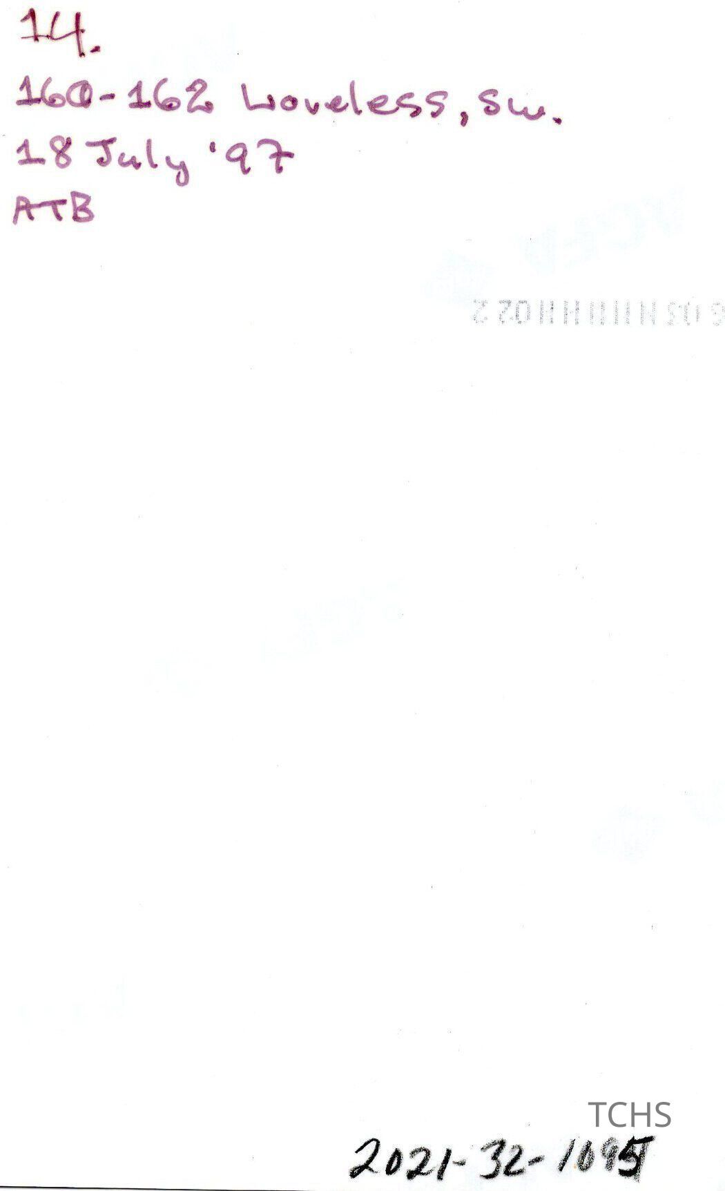 160-162 Loveless SW, 1997Entry/Object ID