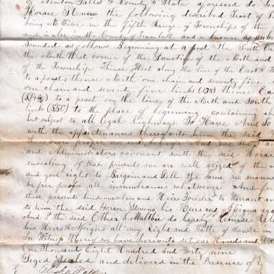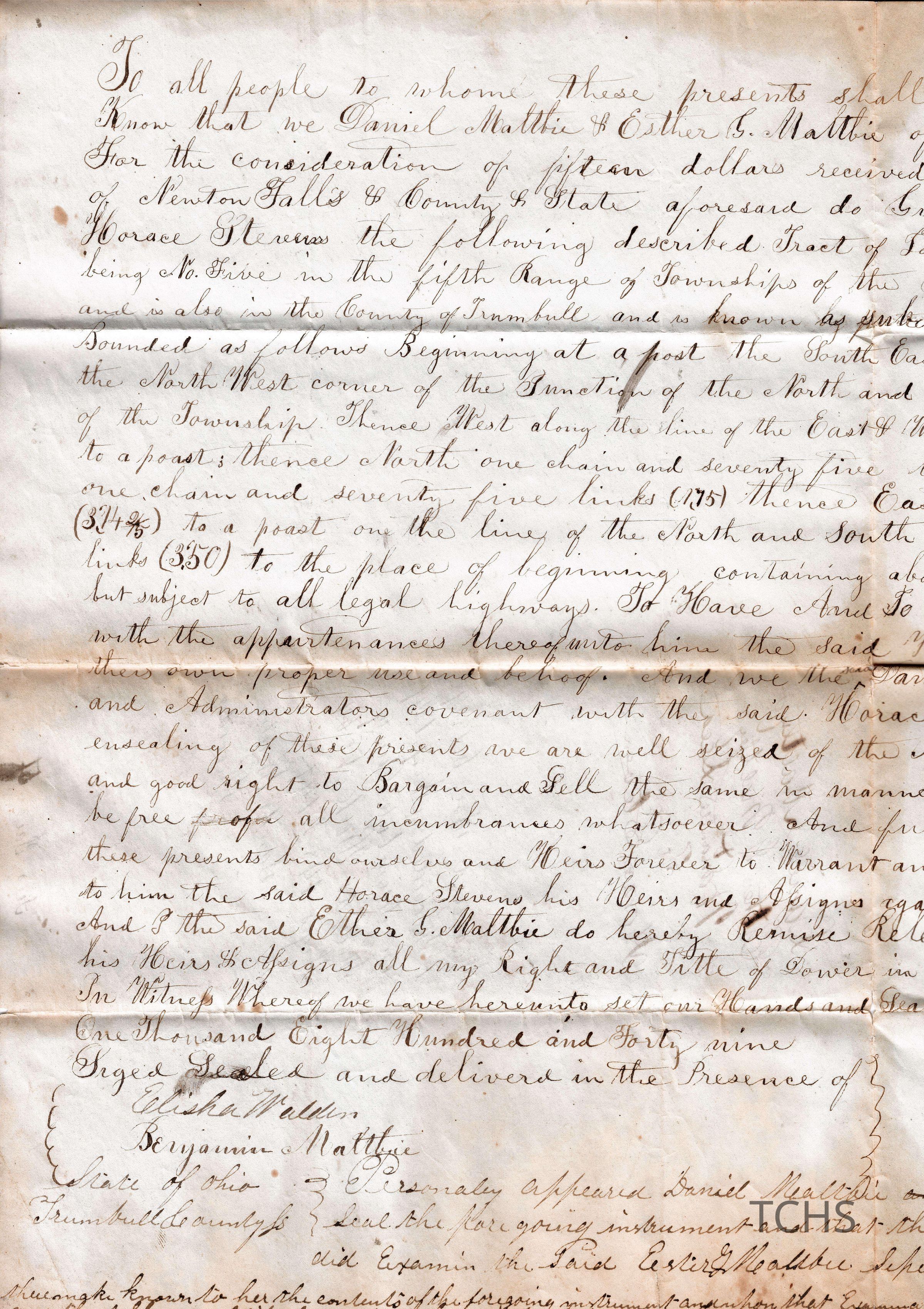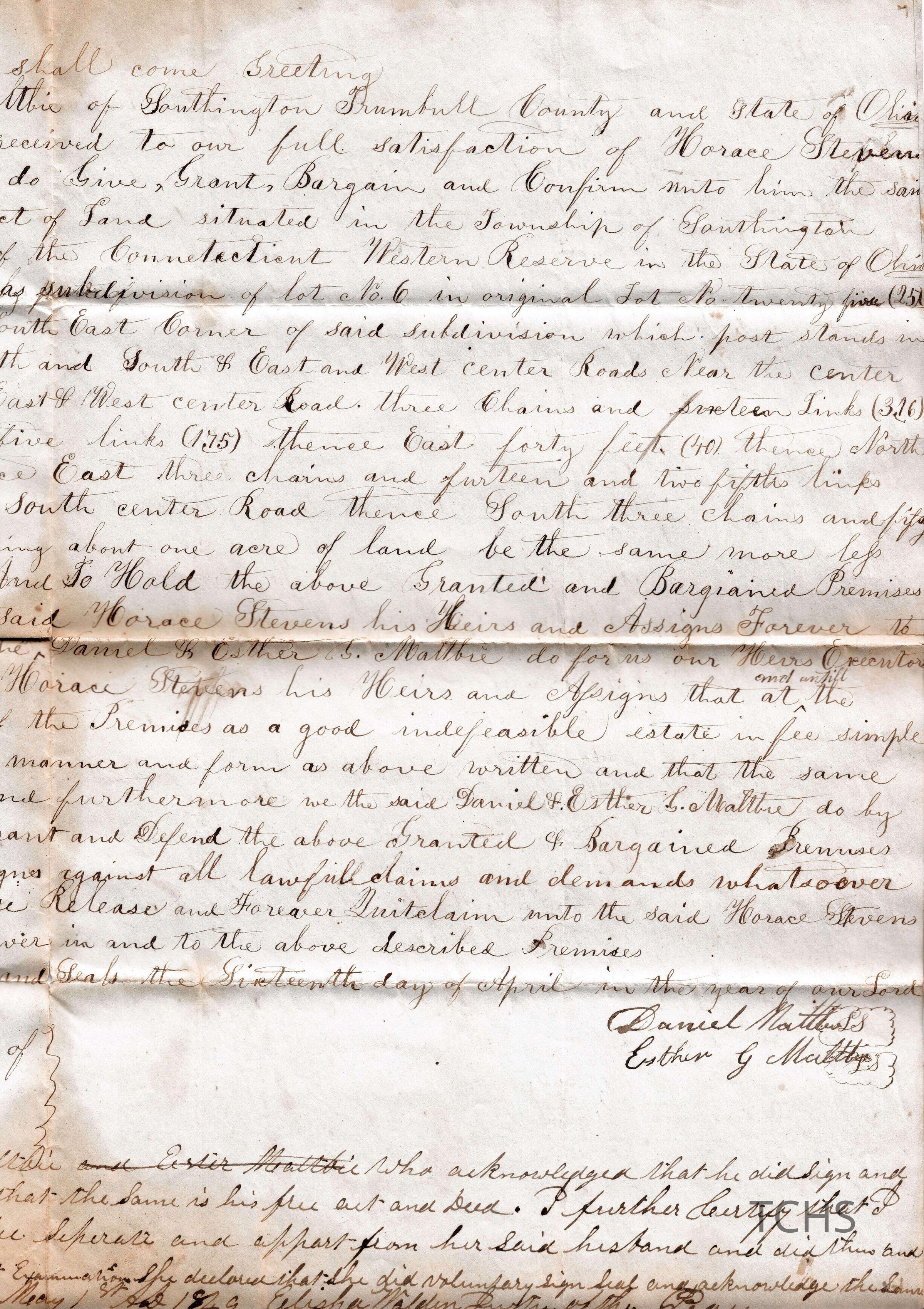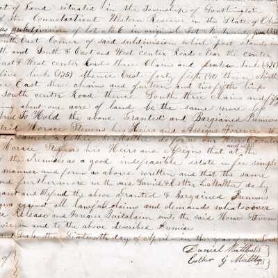 Land sale contract to Horace Stevens for land in Southington Township, 1849Location