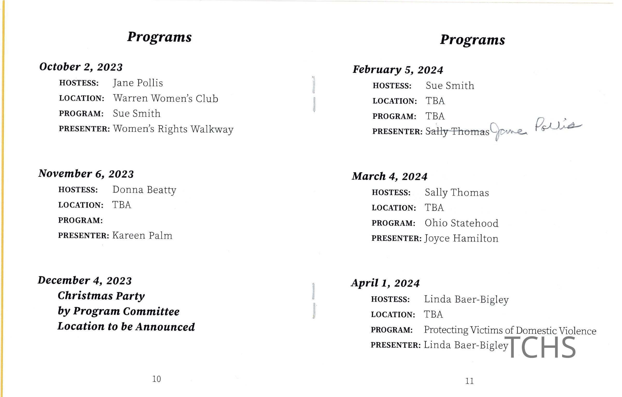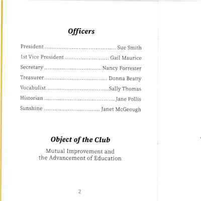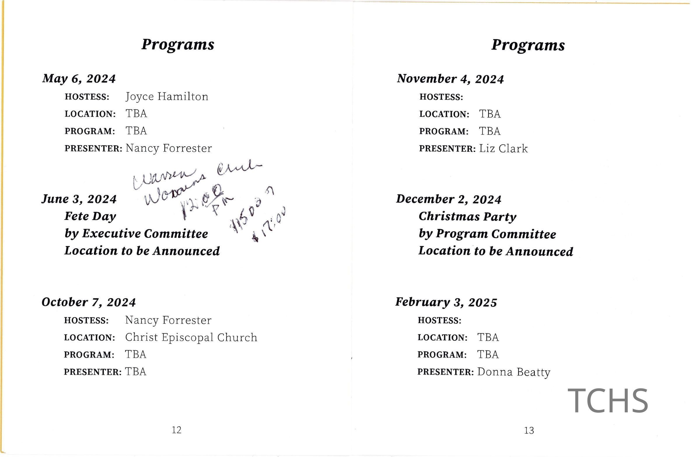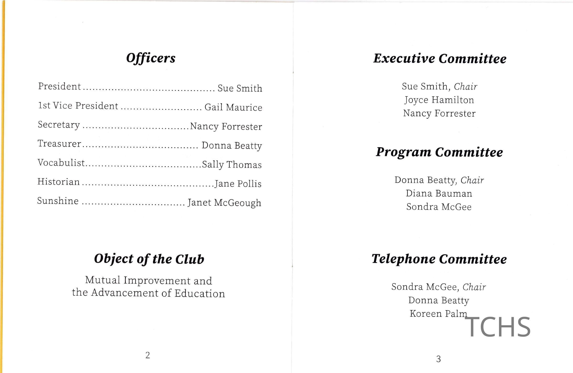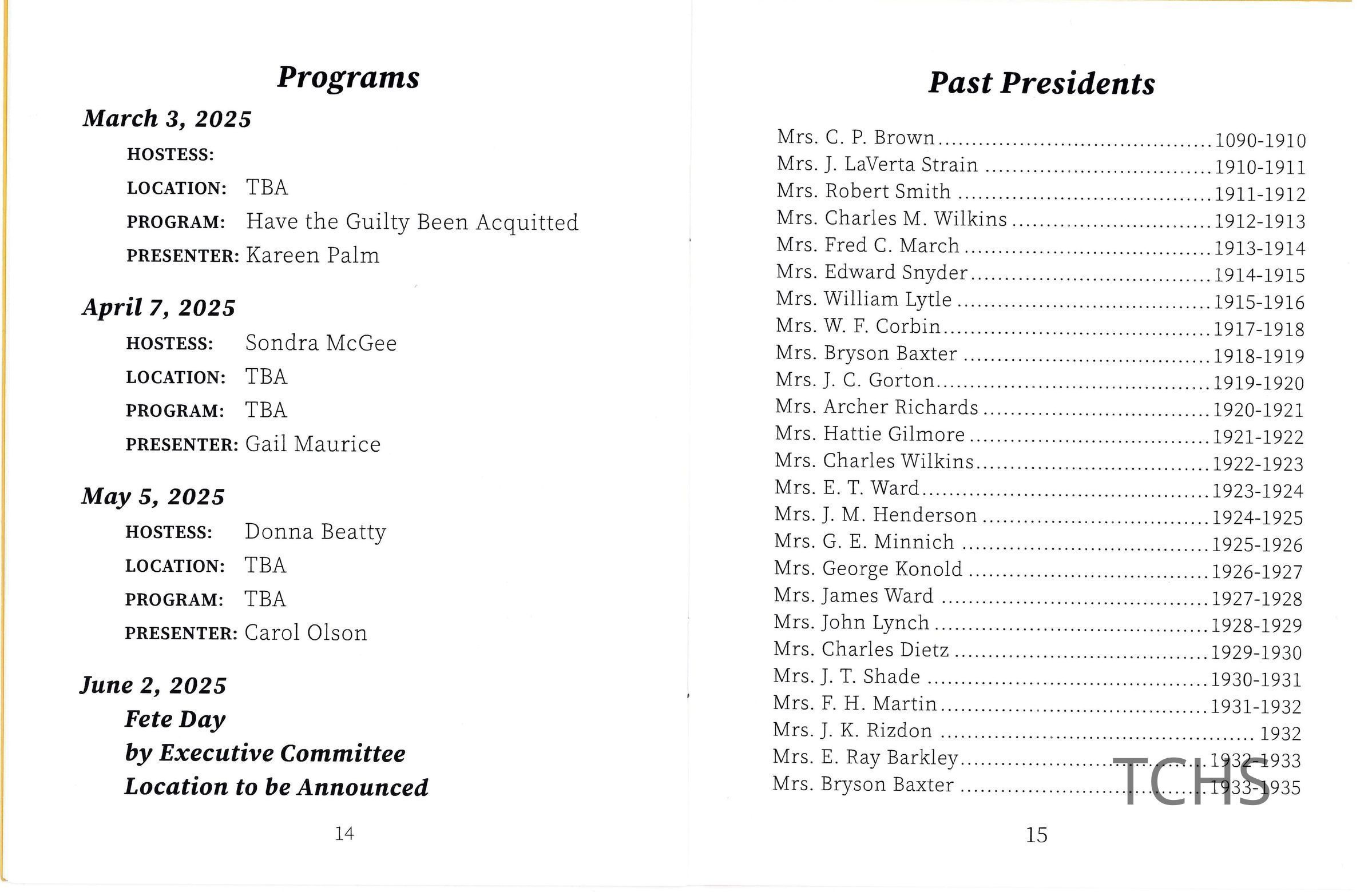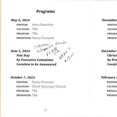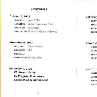 A program dating between 2023 and 2025 for the Monday Afternoon Club.Acquisition