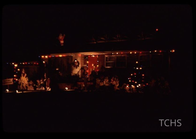 Kodachrome Photograph of Christmas lights at 3065 Solar Lane N.W Warren taken December 23, 1973 by Russell J. MontgomeryAcquisition