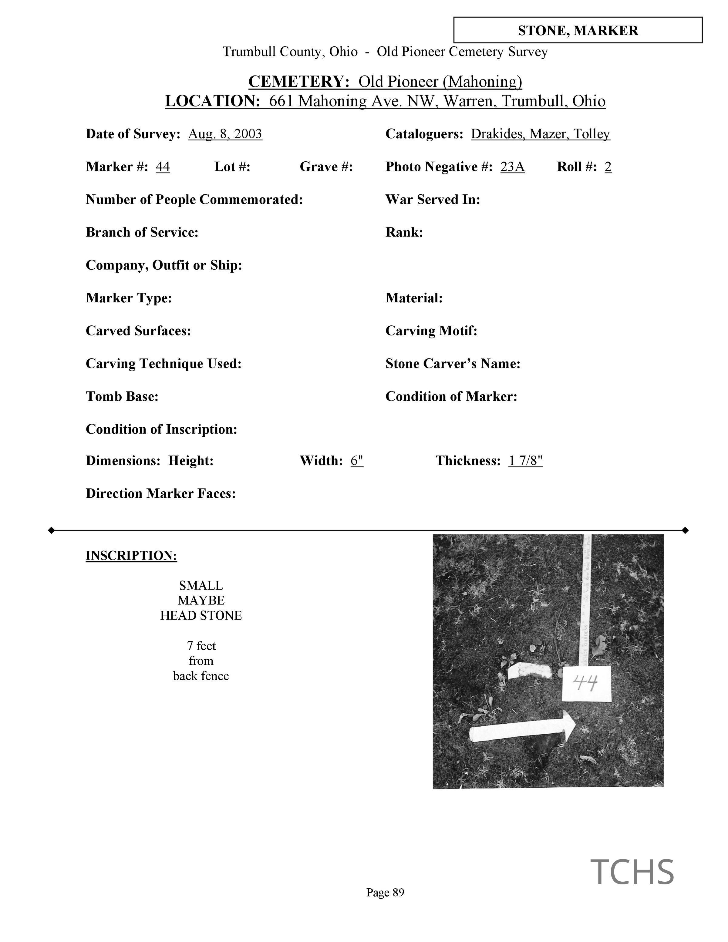 This page was compiled by the Trumbull County Genealogical Society during a 2002-2004 survey of Old Mahoning Cemetery.