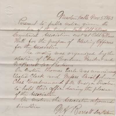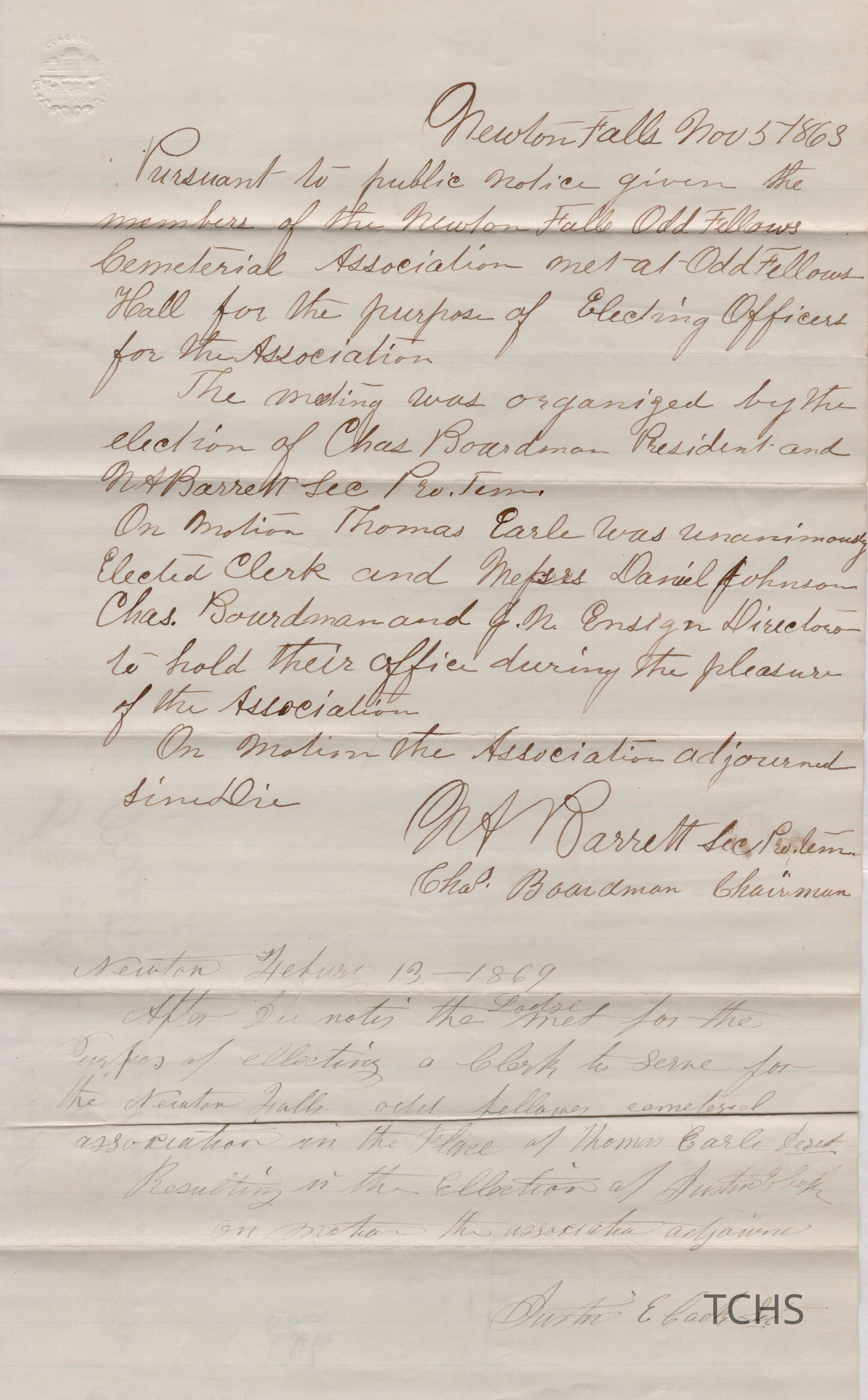 Letter regarding the Newton Falls Odd Fellows officer electionsLocation