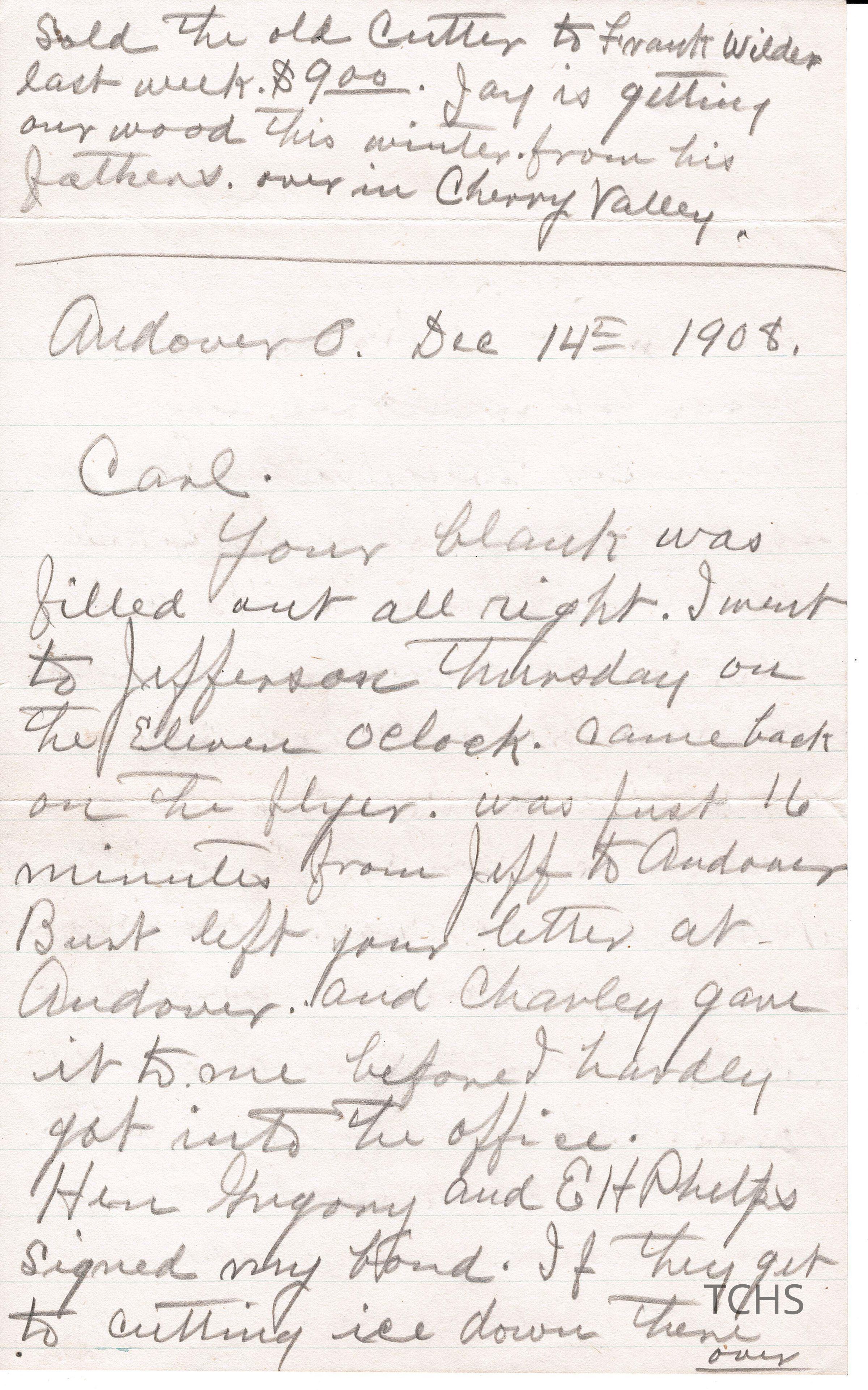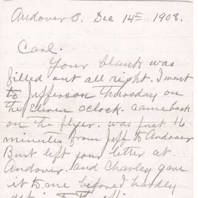 From A.W. Griffing to his son A.C. Griffing, December 14, 1908Acquisition