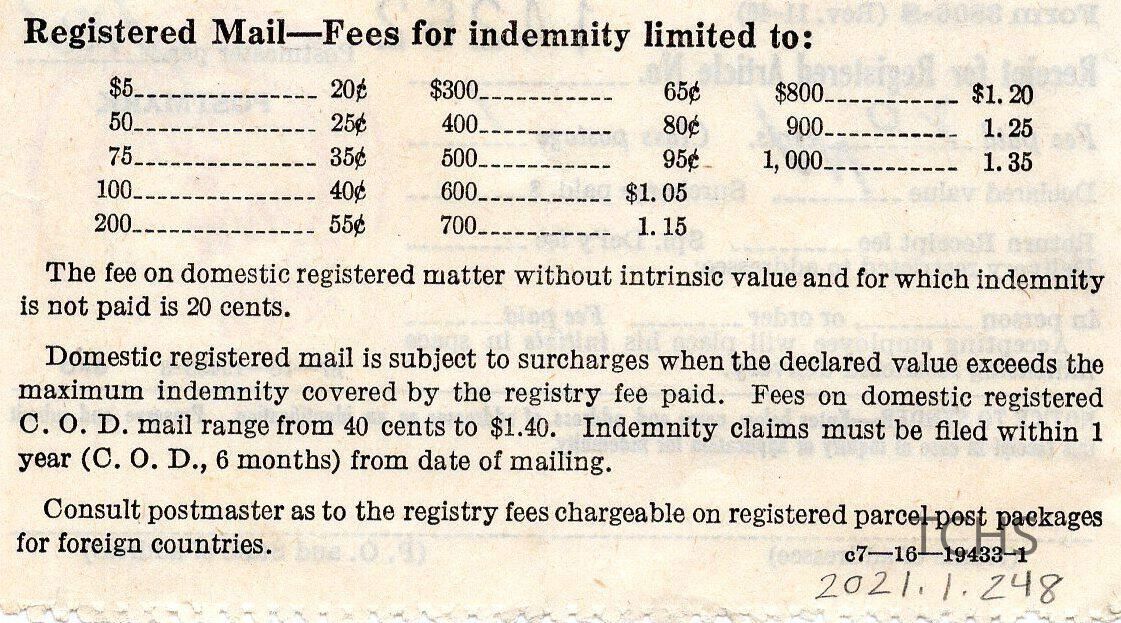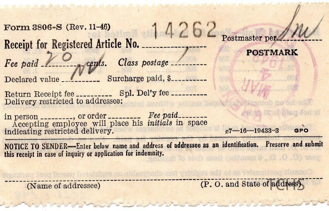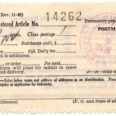Mail Receipt 1948Entry/Object ID