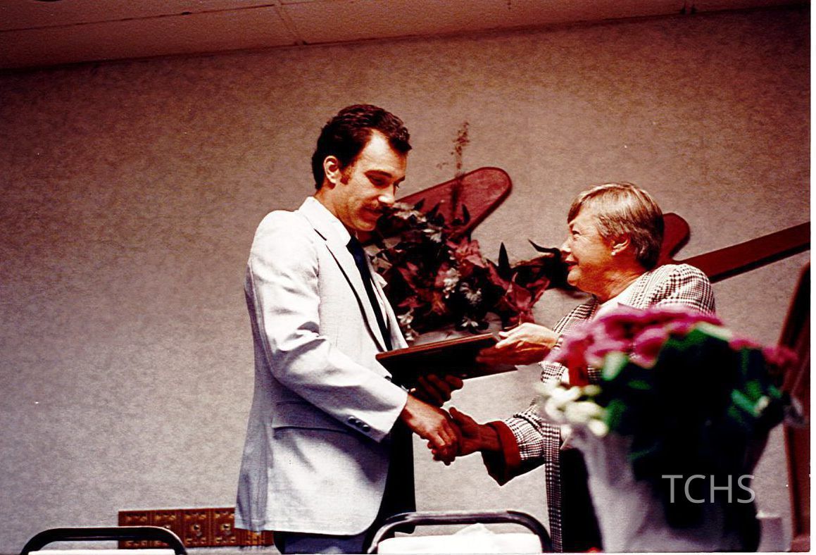 "Ron McCummins received the 4-H meritorious award for outstanding 4-H volunteerism from Barbara Ames 4-H committee member."