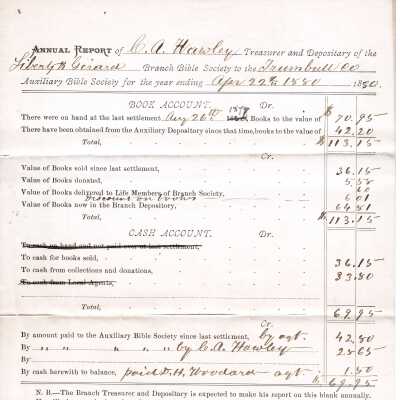 Annual Report, Liberty and Girard Bible Society Branch, 1880Acquisition