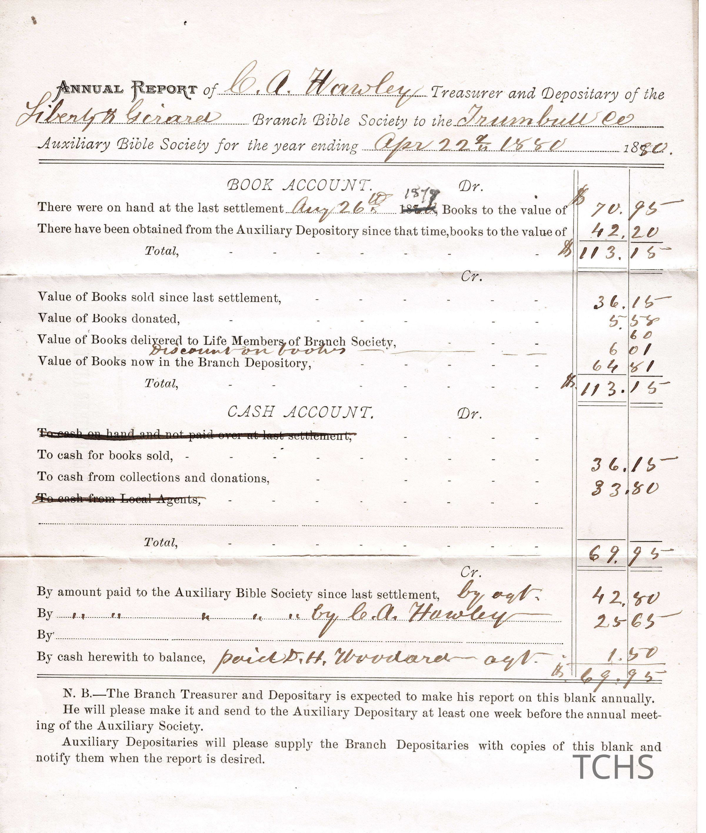 Annual Report, Liberty and Girard Bible Society Branch, 1880Entry/Object ID