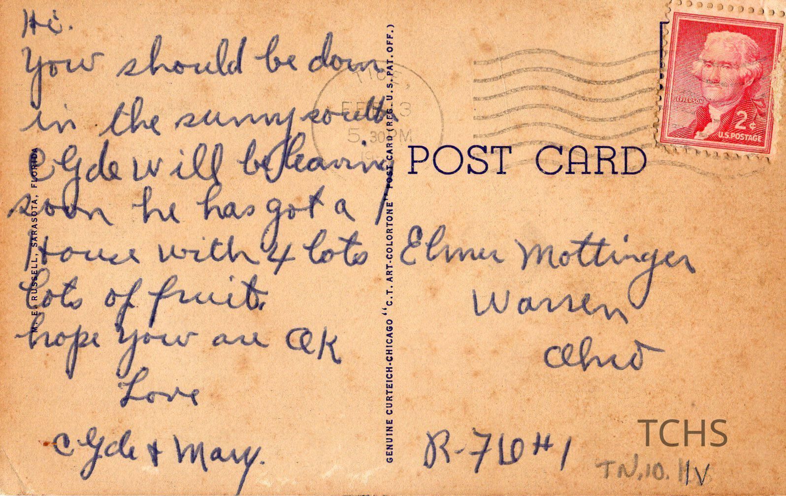 Florida postcard addressed to Elmer Mottinger.Acquisition