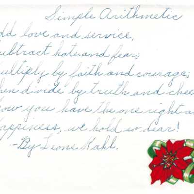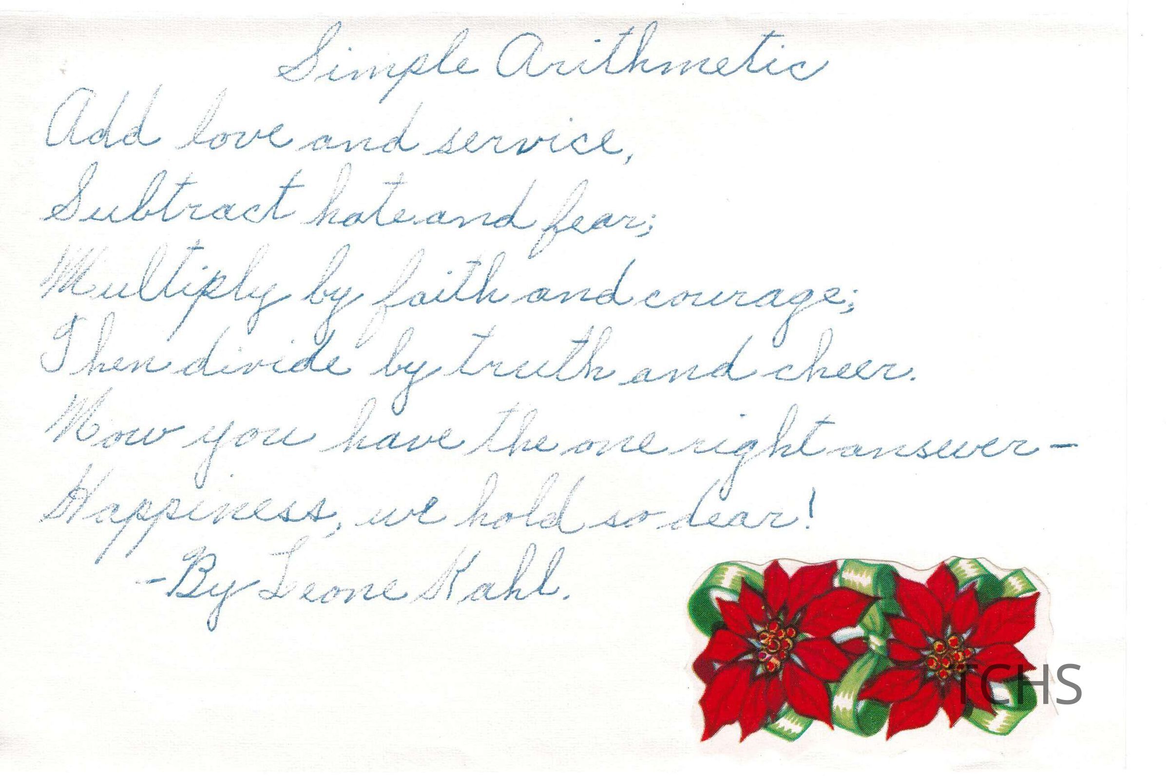 Handmade Christmas card. Written inside "By Leone Kahl"