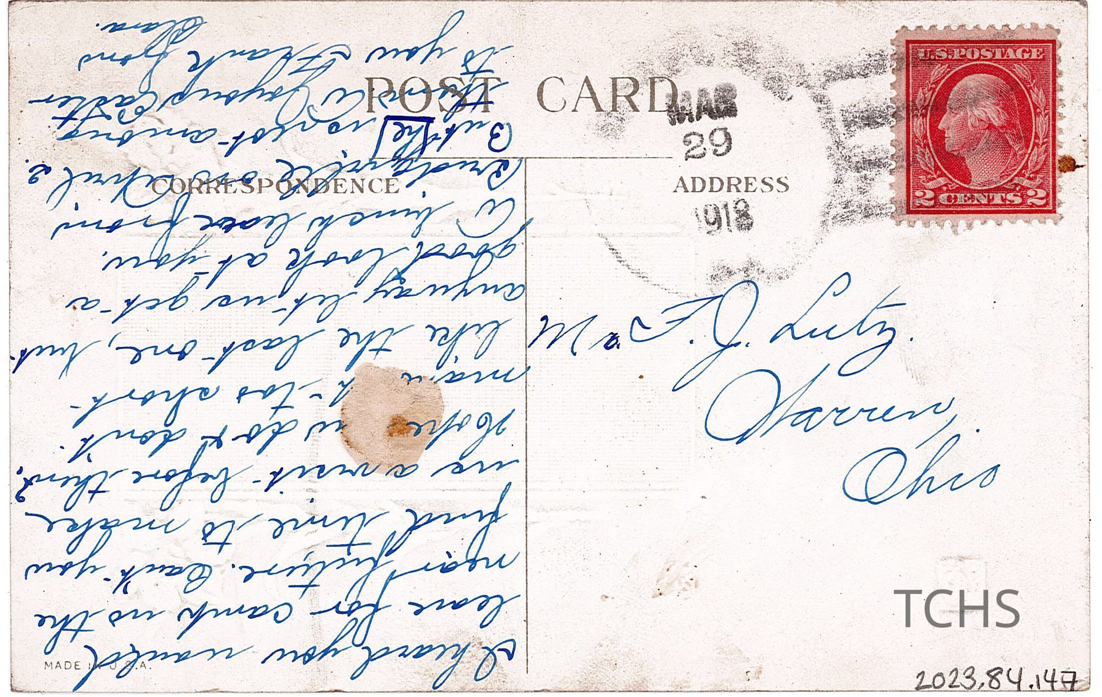 An Easter postcard to F.J. Lutz, dated March 29th, 1918.Acquisition