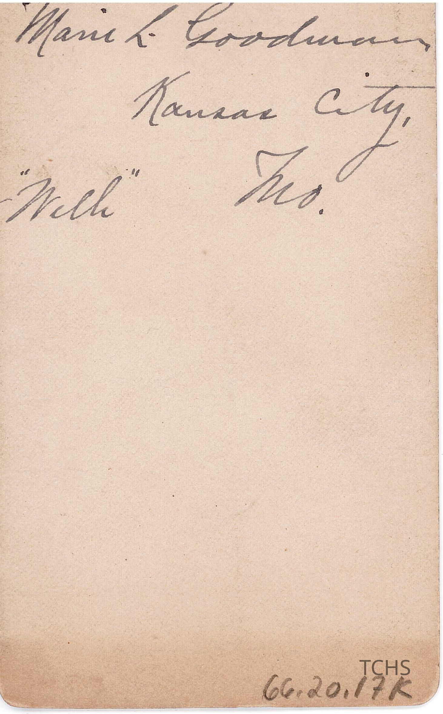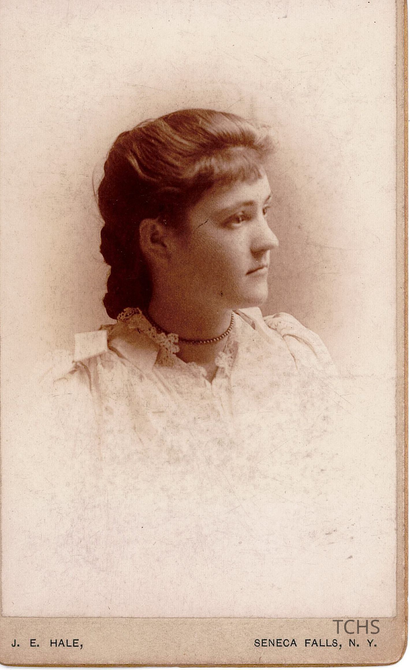 Cabinet card of Marie L. Goodman from Kansas City. Undated. Taken by J. E. Hale in Seneca Falls, N.Y.Acquisition