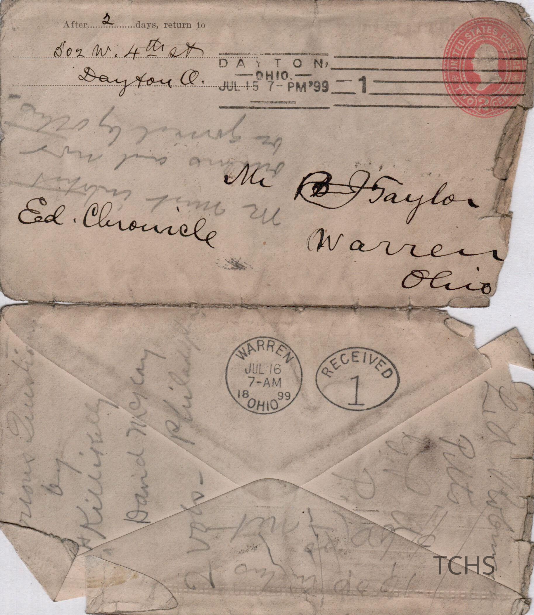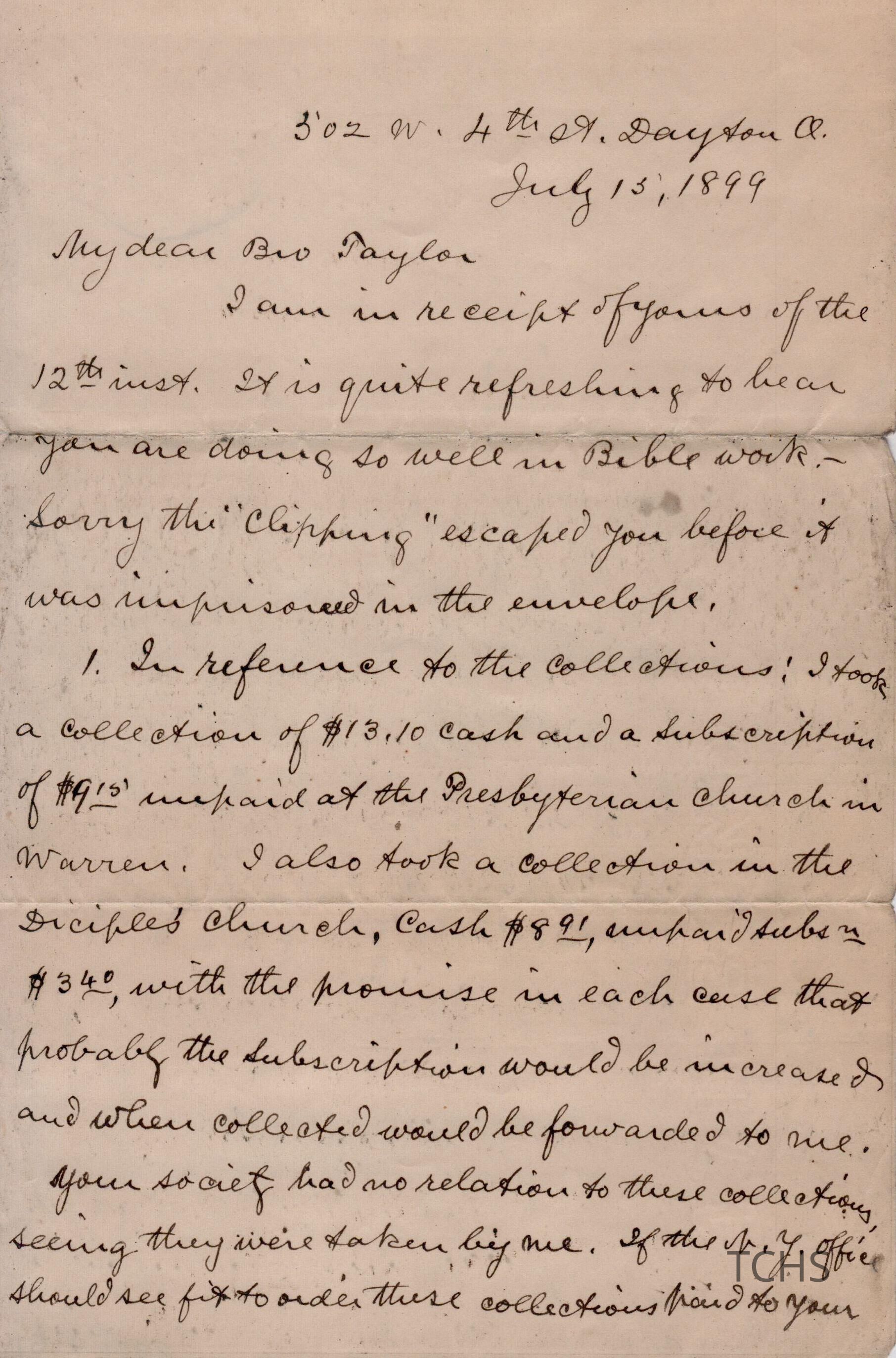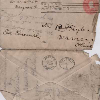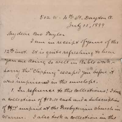 B.J. Taylor letter, 1899Entry/Object ID