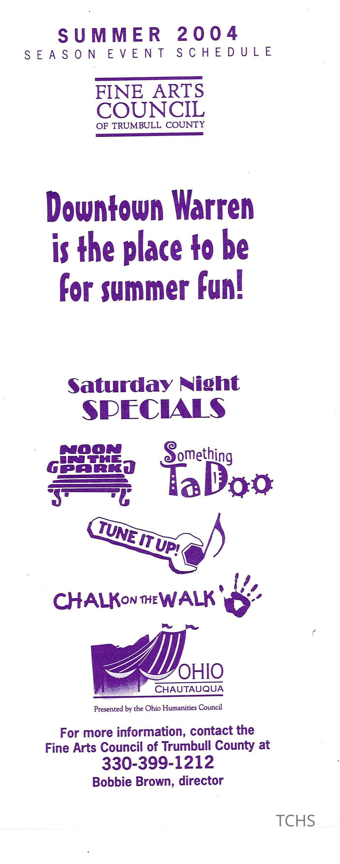 Summer 2004 Season Event Schedule by the Fine Arts Council of Trumbull County.Relationships