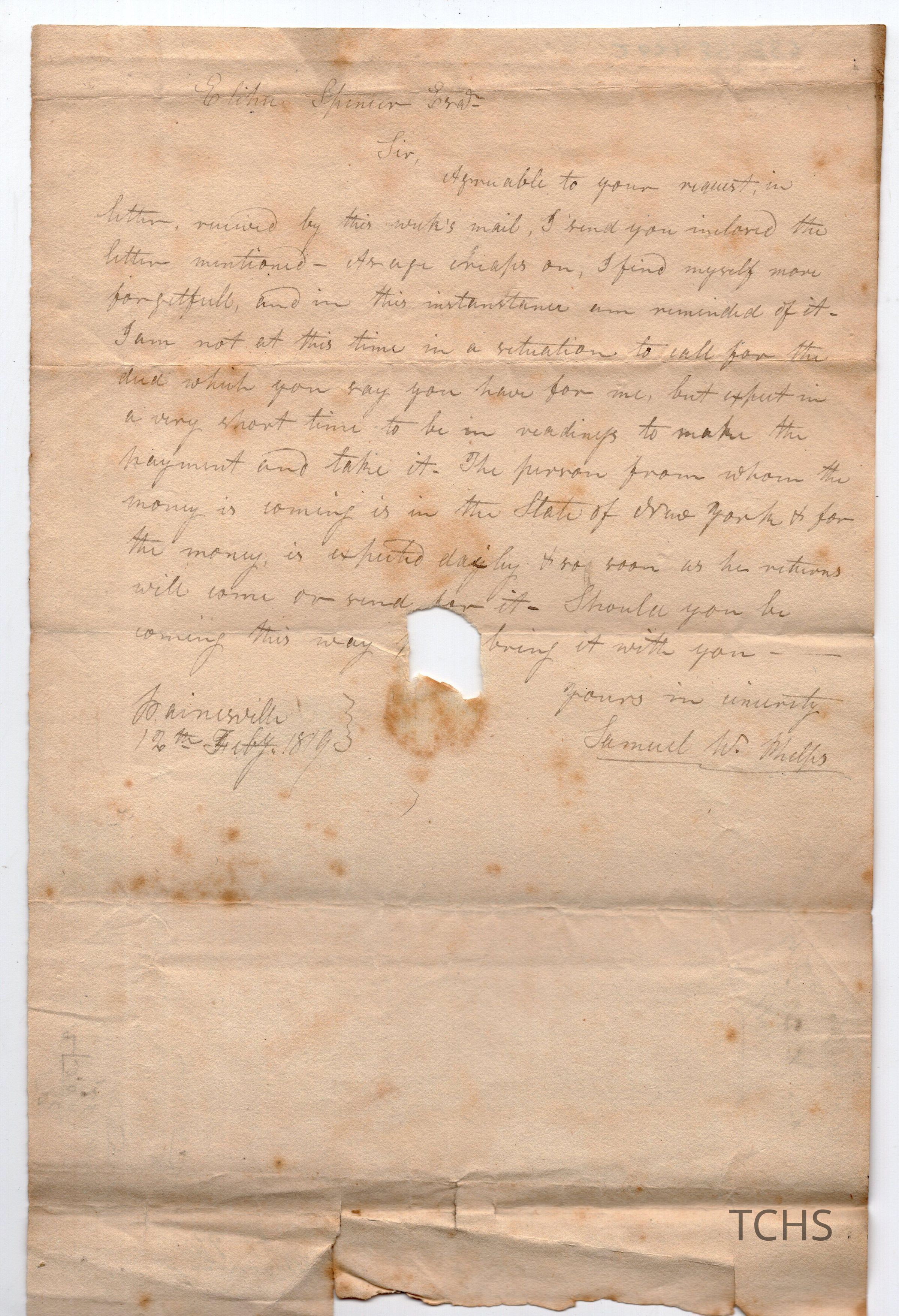 Letter to Elisha Spencer, Warren, from Samuel W. Phelps, Painesville.Collection
