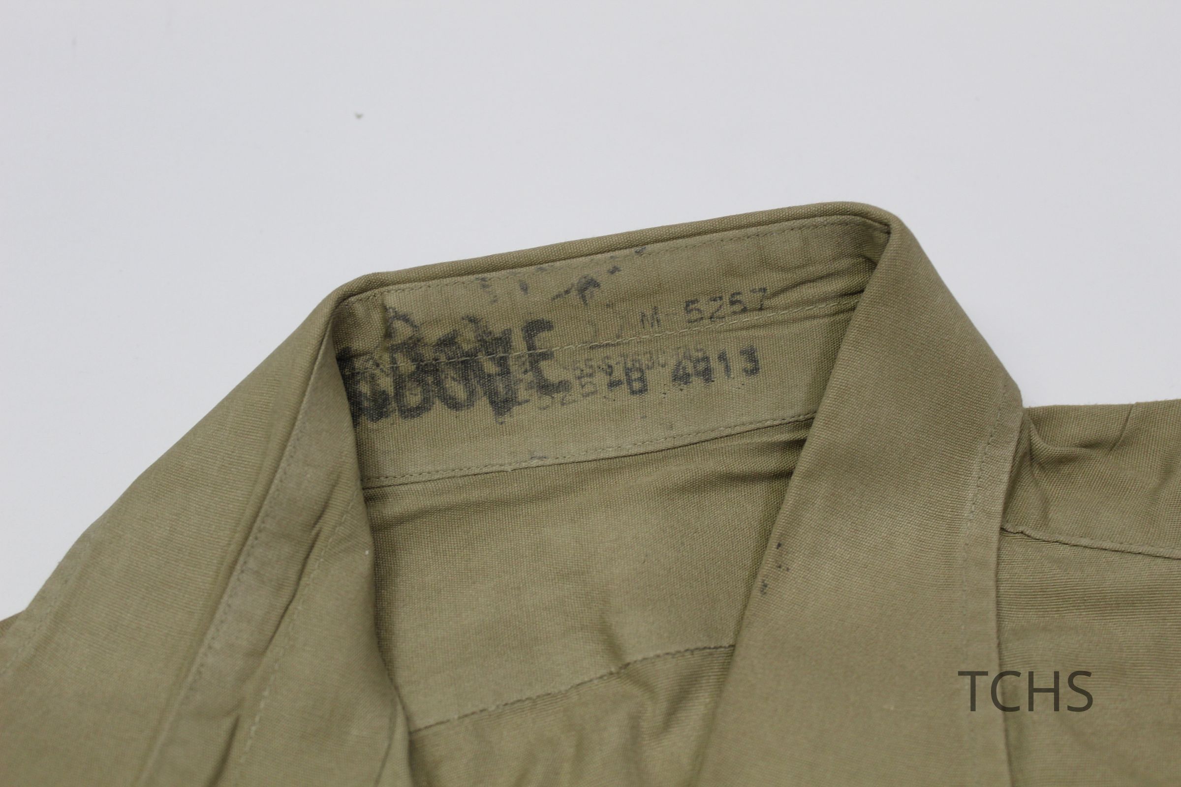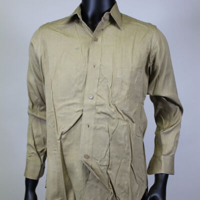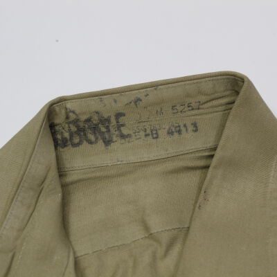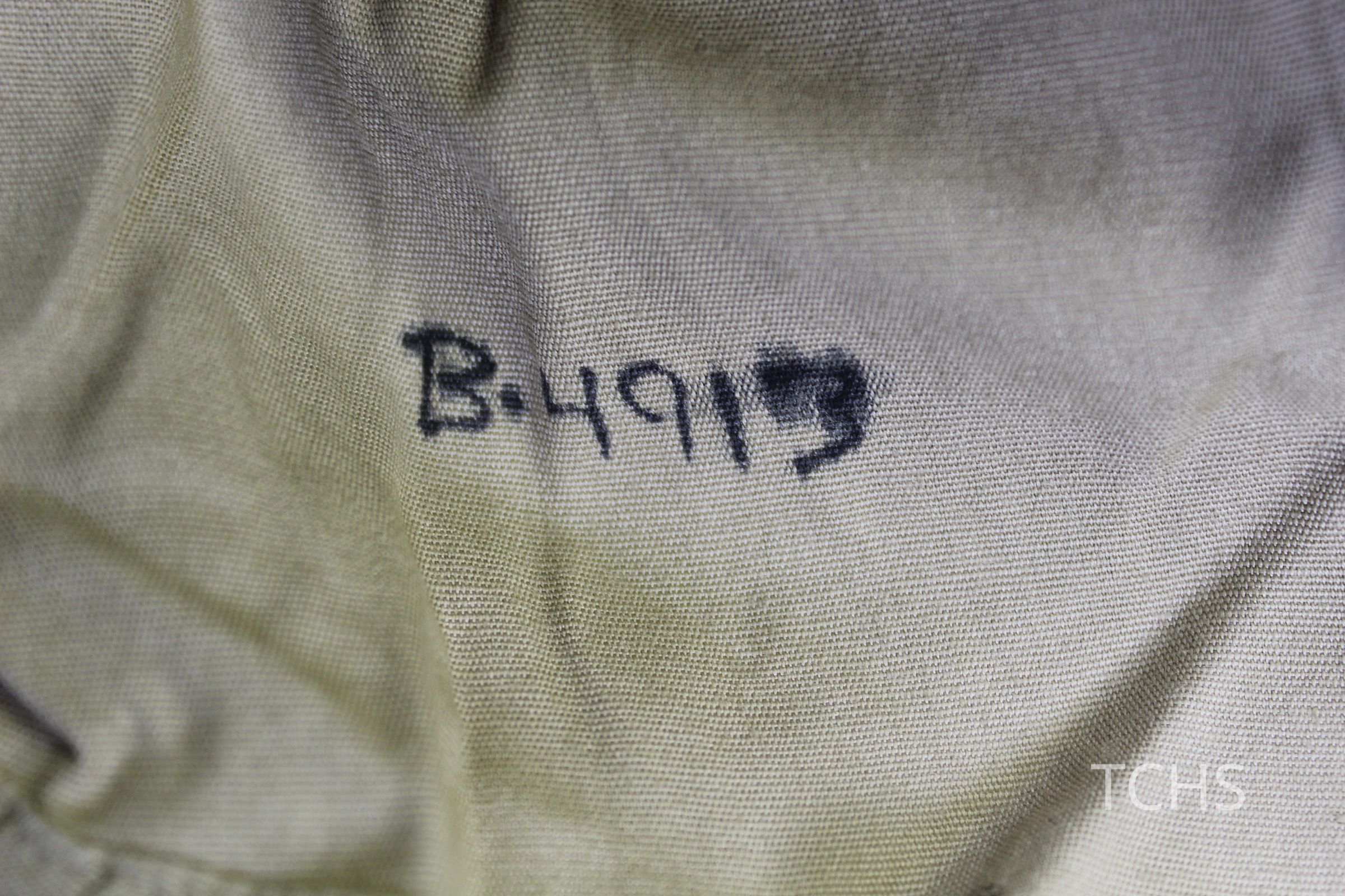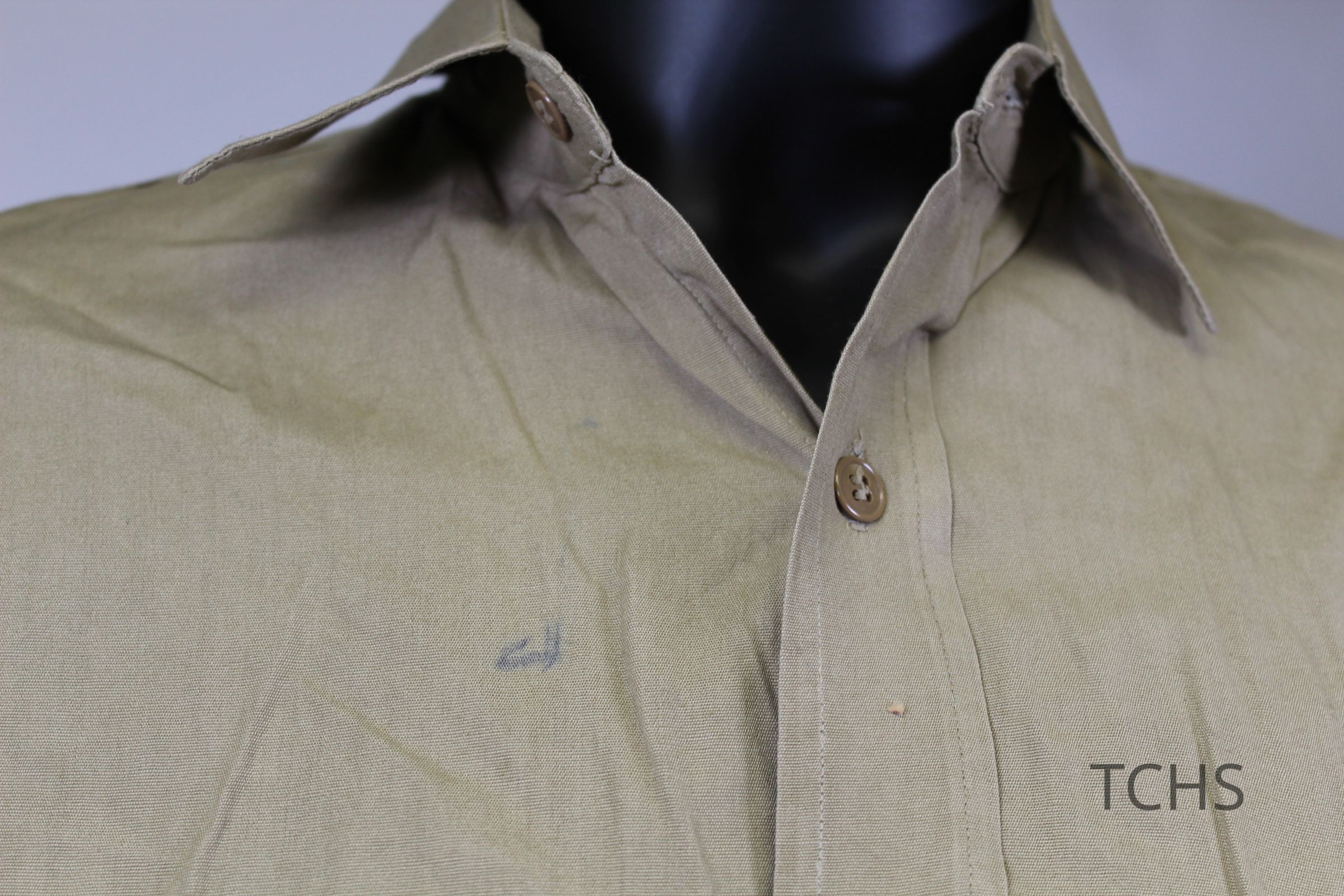 Korean War tan uniform shirt belonging to D. Boye. B-4913 is written on the inside.Acquisition