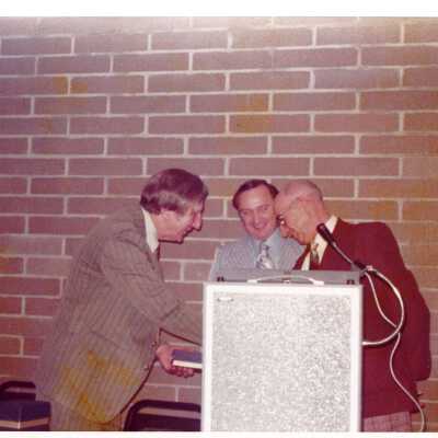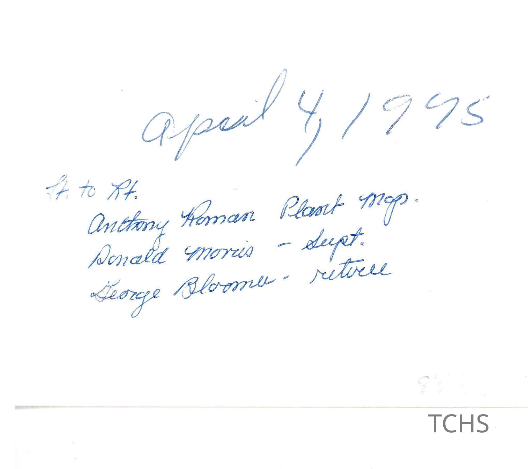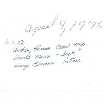 April 4, 1975 Left to right: Anthony Roman -- Plant Manager Donald Morris -- Superintendent George Bloomer -- Retiree