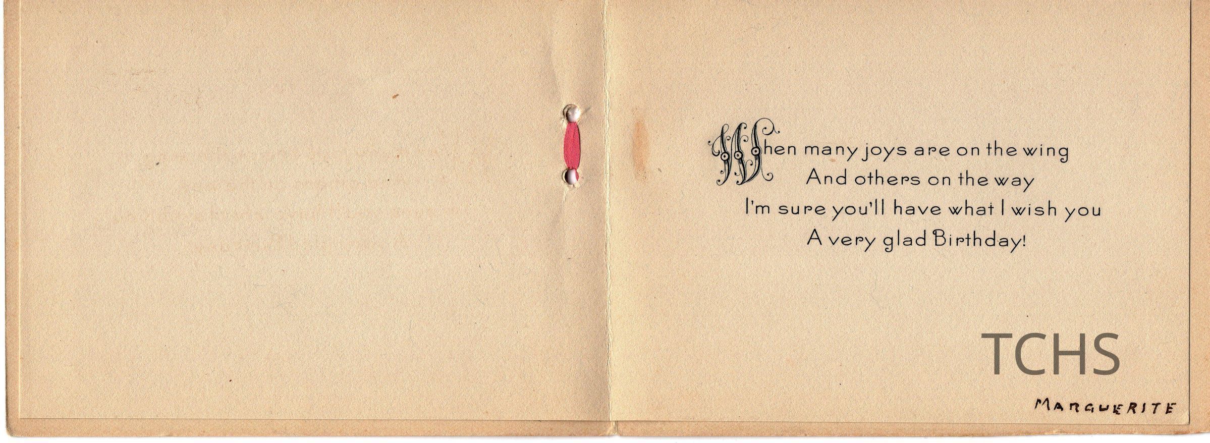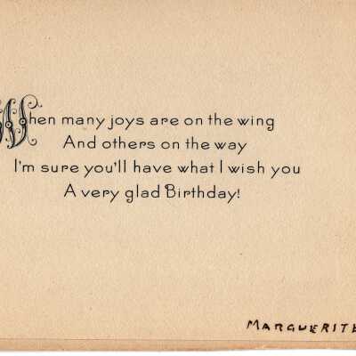 Small Birthday card. Signed inside "Marguerite"Acquisition