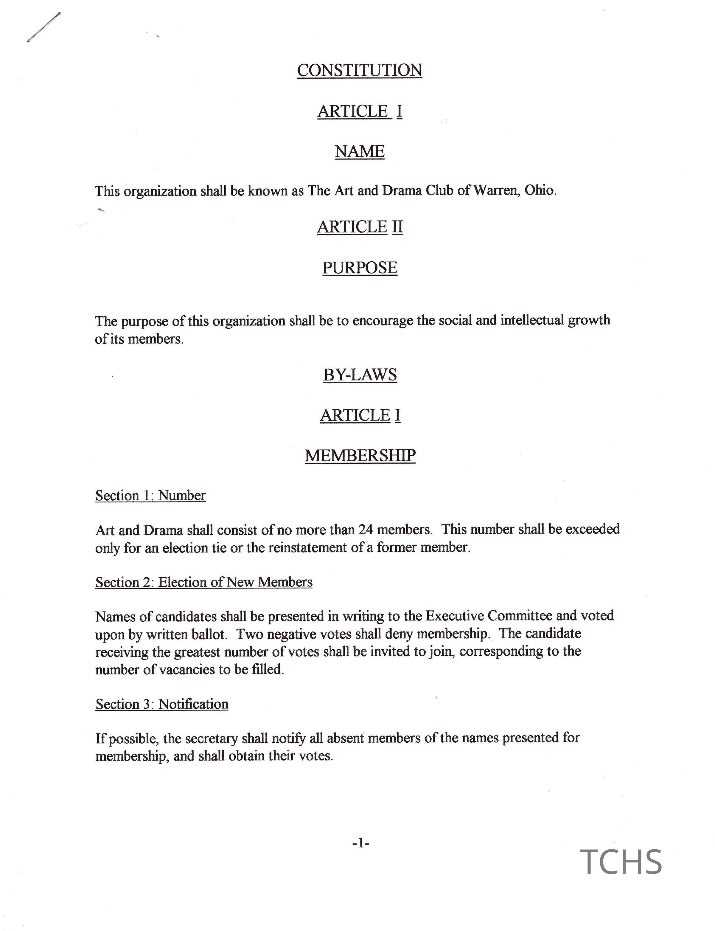 Arts & Drama Club of Warren Constitution incorporated in 2015.Collection